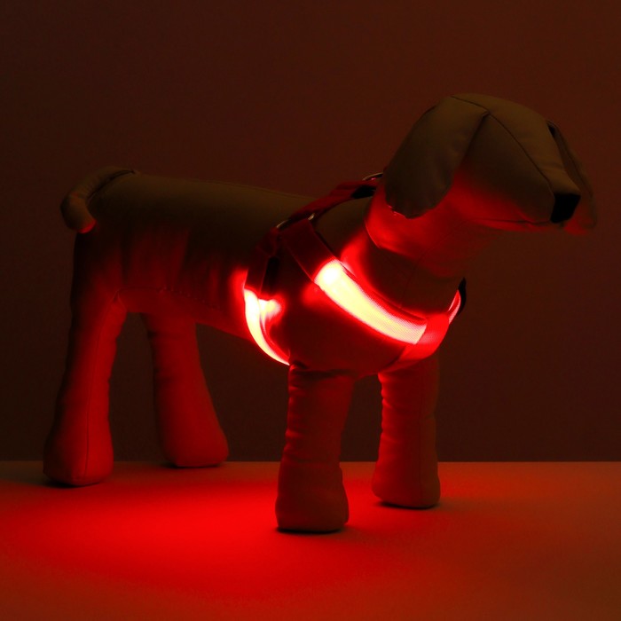 Шлейка светящаяся на батарейках, 3 режима свечения, красная