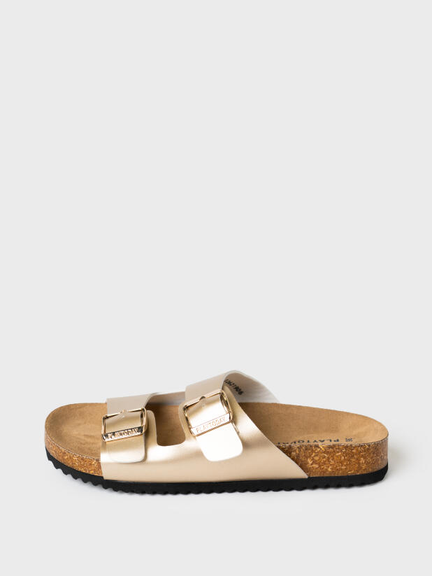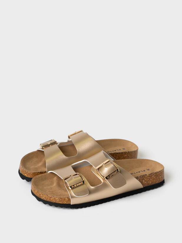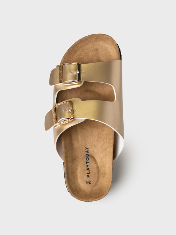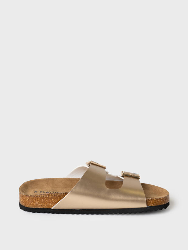 Модные и удобные сабо в стиле биркеншток подходят под любую одежду от джинсов до платьев. Босоножки выполненые из искусственной кожи золотистого цвета. Все ремни регулируются на необходимый объем стопы и надежно фиксируют ногу. Стелька профилированная, сконструирована я с учетом строения стопы. Мягкая микрофибра приятна по ощущениям для стопы и легка в уходе. Конструкция сандалий с высокими бортами удерживают стопу в правильном положении, препятствует ее скольжению и способствует правильному анатомическому развитию стопы. Легкая подошва из ЭВА с противоскользящей ходовой поверхностью легкая и хорошо амортизирует при ходьбе.