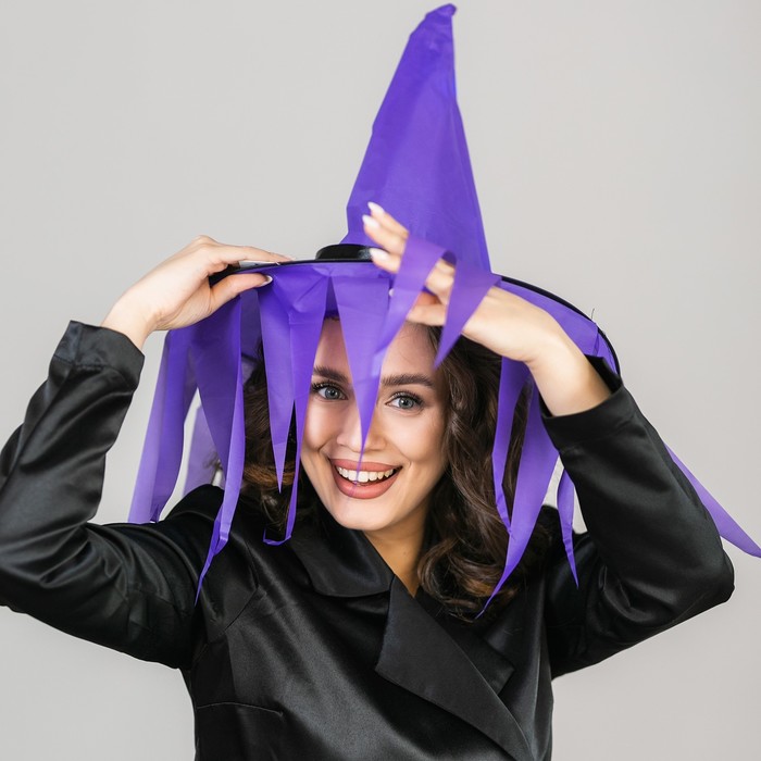 Шляпа-конус — незаменимый атрибут для такого праздника! Она создаст образ экстравагантной ведьмочки. А какой именно она будет, решать вам. Добавьте длинный плащ и станьте повелительницей всех магов и волшебников. Или наденьте коротенькое платье и превратитесь в романтичную колдунью. Цветная лента на шляпе добавит наряду яркости и выделит вас из толпы. В таком головном уборе вы будете самым ярким костюмированным персонажем!