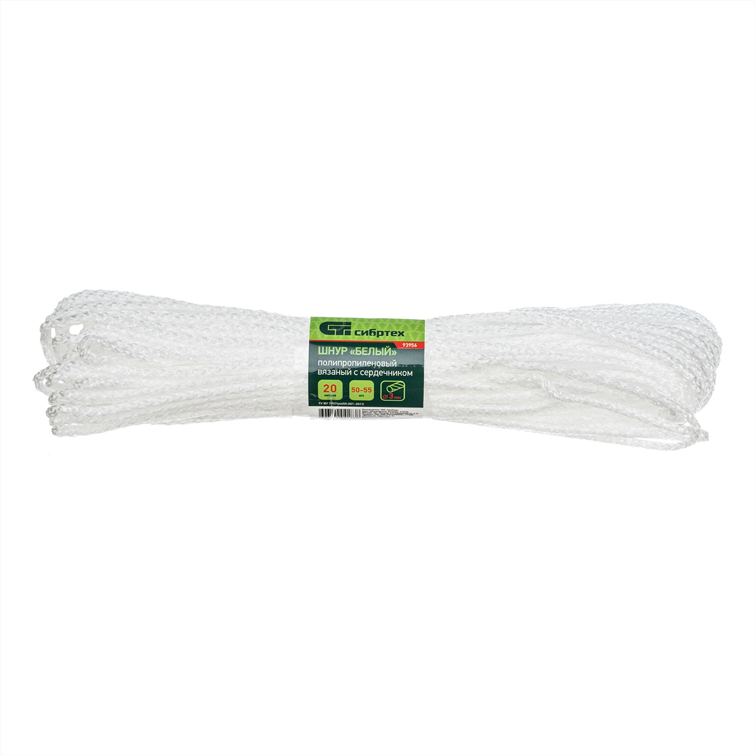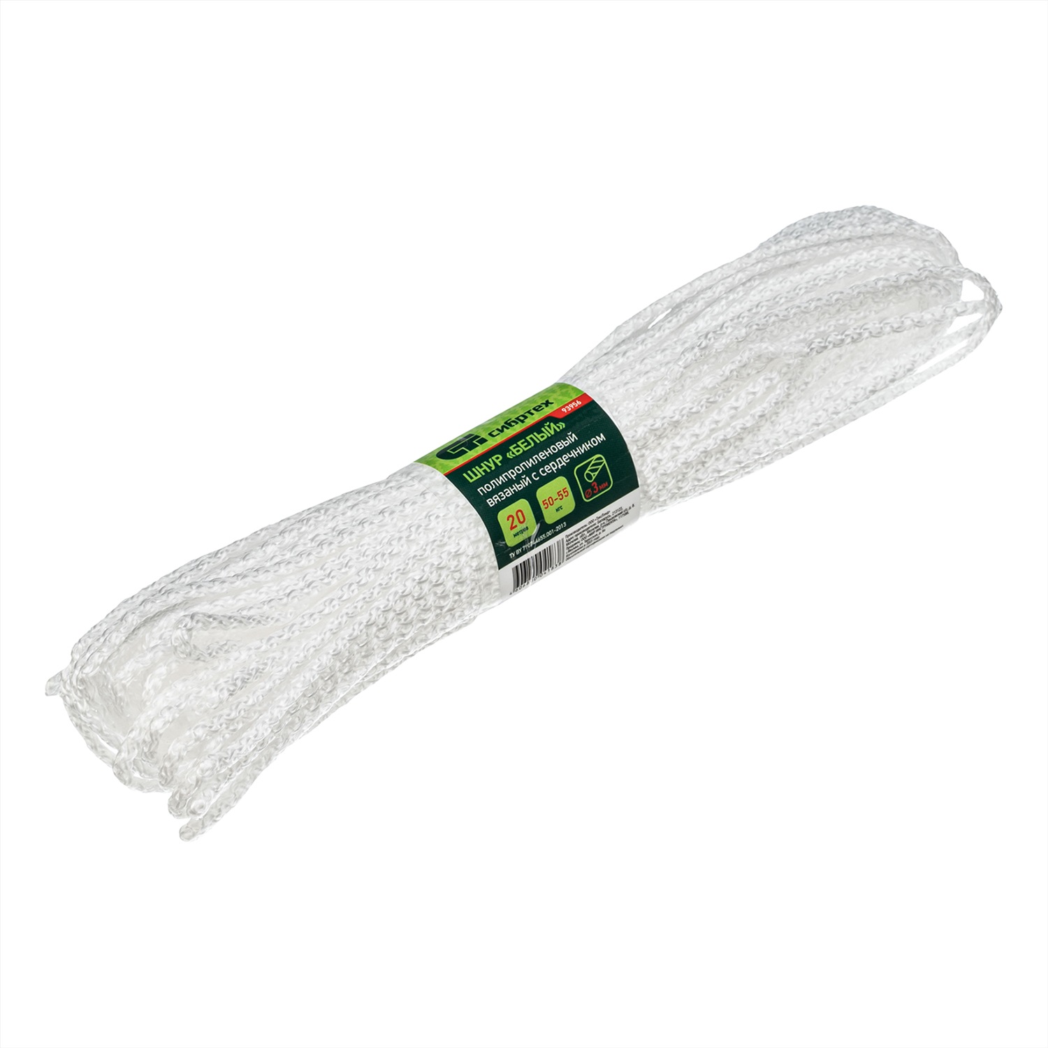 Вязаный полипропиленовый шнур с сердечником Сибртех 93956 белого цвета, диаметром 3 мм, длиной 20 м, будет полезен для хозяйственных нужд: сушки белья, связывания предметов, подвязки растений. Пригодится также в походе, на охоте или рыбалке. Благодаря сердечнику и высокопрочной оплетке обладает повышенной устойчивостью к истиранию и разрыву — максимальная разрывная нагрузка составляет 50 кгс. Шнур выдерживает значительный вес, не растягивается и не провисает.