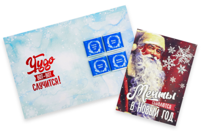 Наполнение: Внутри открытки 4 вкуснейшие молочные плитки шоколада по 5гр. размером 31х31мм. Каждая завернута в индивидуальную упаковку под тематику открытки. Состав- сахар, какао масло, сухое цельное молоко, какао тертое, эмульгатор соевый лецитин, натуральный ароматизатор ваниль.