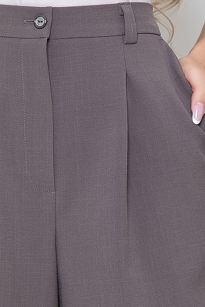 Шорты-бермуды из костюмной ткани,с центральной застежкой "гульфик" на молнию и пуговицу.По переду-боковые наклонные карманы.Пояс по спинке собран на эластичную резину.