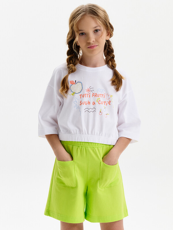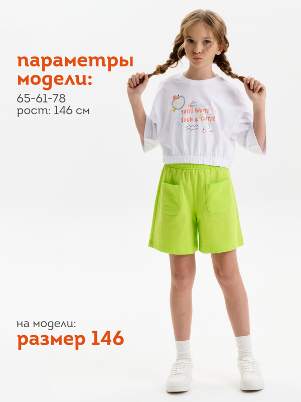 Шорты трикотажные Pelican – это идеальный выбор для активных и стильных девочек-подростков. Сшитые из 100% хлопка, они невероятно мягкие, легкие и приятные к телу, обеспечивая комфорт в течение всего дня. Удлиненная модель с высокой посадкой и свободным кроем дарит ощущение свободы движений, а регулируемый пояс на шнуровке позволяет идеально подогнать шорты по фигуре.  Дышащая ткань позволяет коже дышать, что особенно важно в жаркие летние дни.  Шорты оснащены удобными накладными карманами спереди, куда можно положить необходимые мелочи. Яркие, кислотные цвета и трендовый дизайн сделают образ неповторимым.