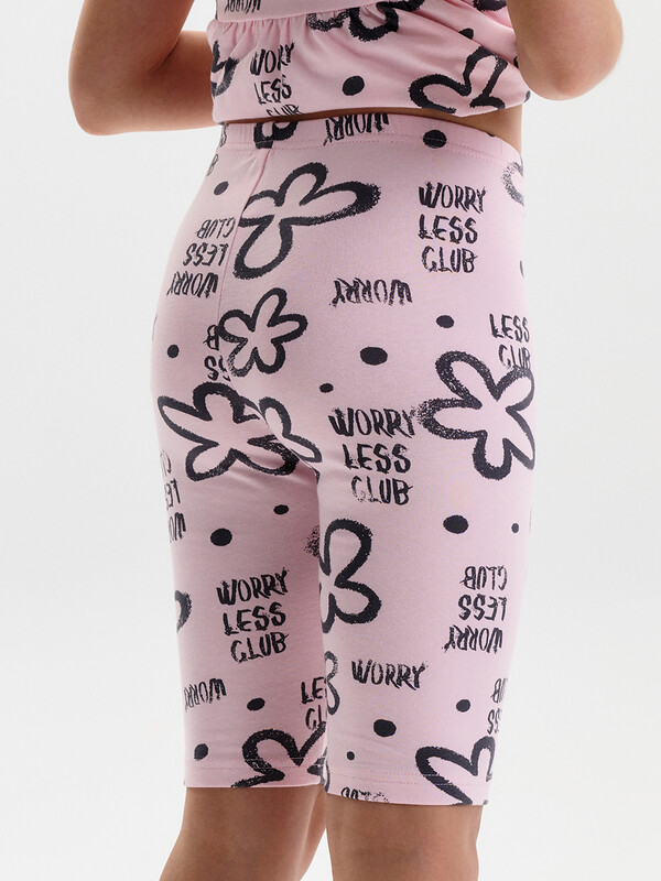 Трикотажные велосипедки из гладкого трикотажа с высокой посадкой. Широкая тунельная резинка на поясе.
