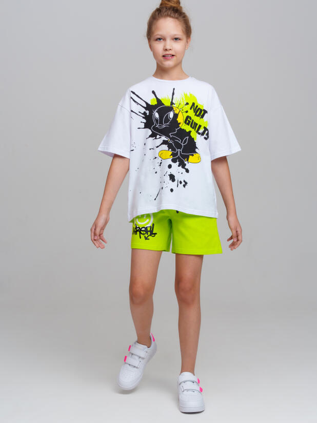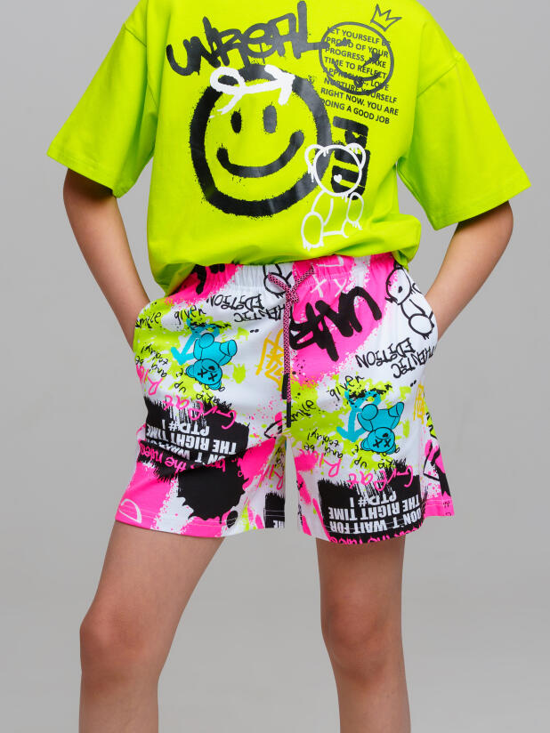 Набор шорт для девочки подростка. Комплект шорт из качественного и приятного на ощупь трикотажа джерси. Шорты на резинке со шнурком. Боковые карманы. Высокое содержание хлопка 95%. Благодаря наличию эластана в составе ткани изделие держит форму и меньше мнется. Модель выполнена из качественного и приятного на ощупь трикотажа.