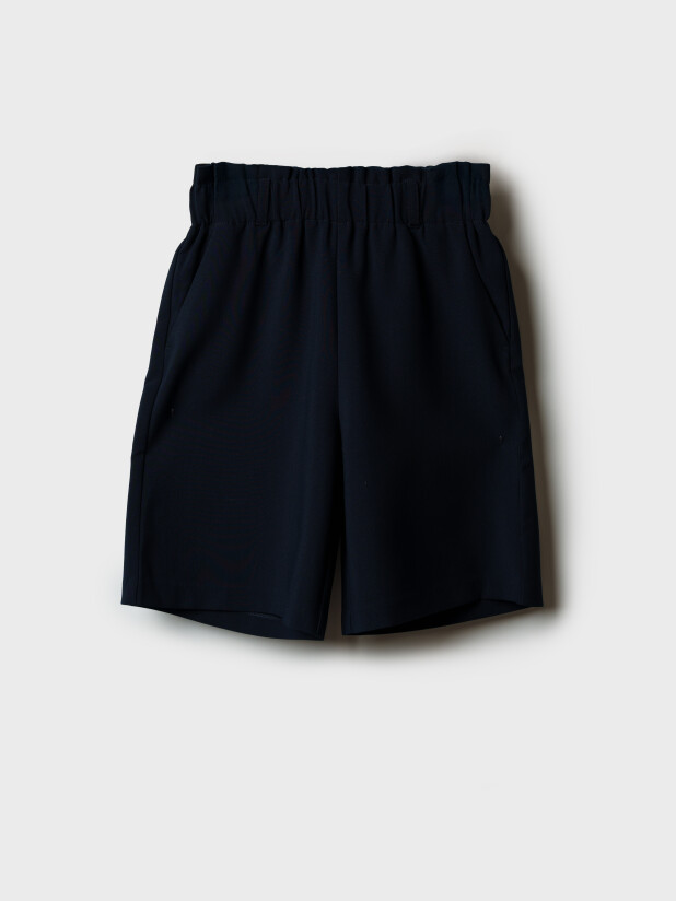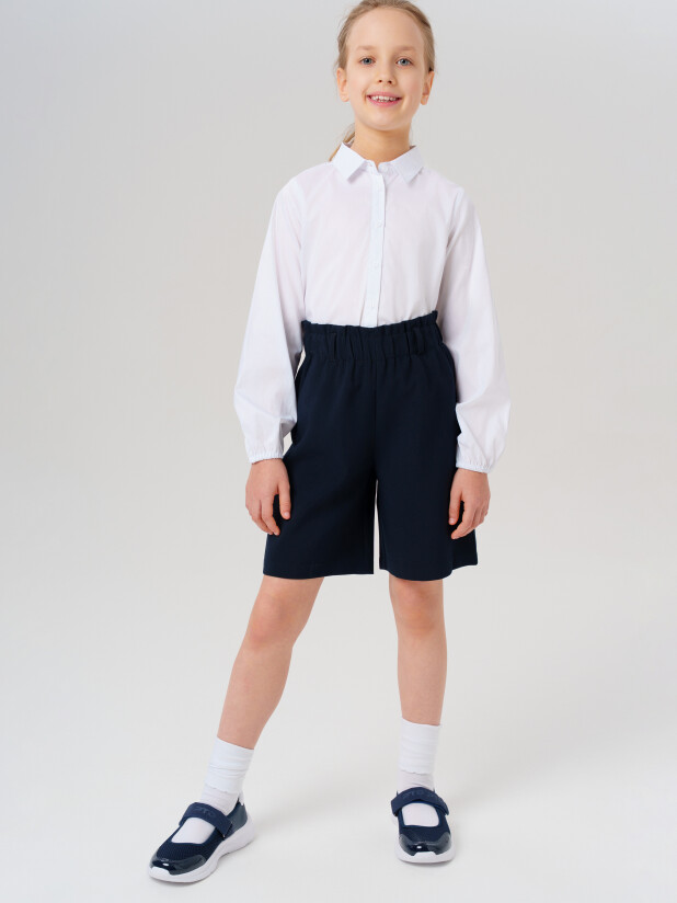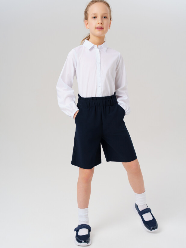 Классические тёмно-синие школьные текстильные шорты non iron для девочки подростка от PlayToday — элегантное и практичное решение для тёплого времени года. Универсальный фасон отлично подойдёт и для школьных будней, и для торжественных мероприятий.