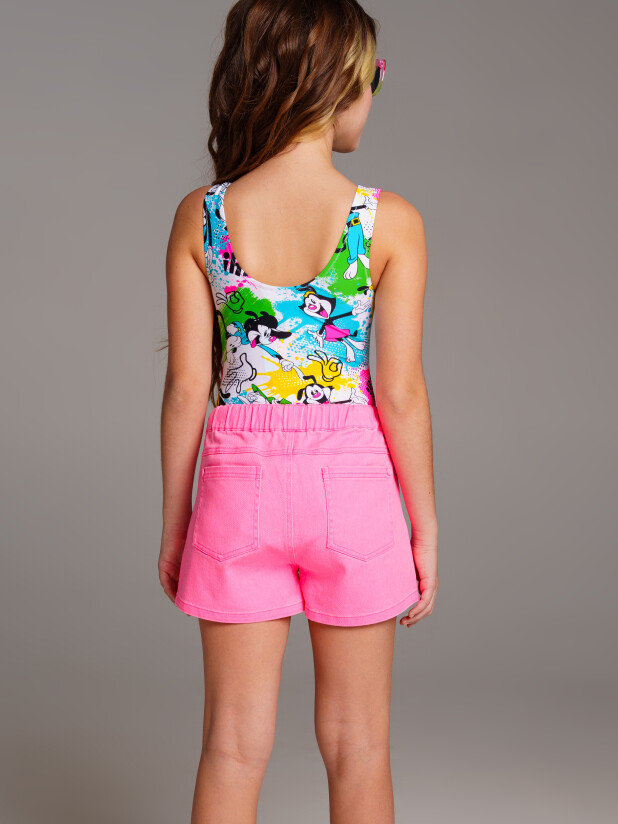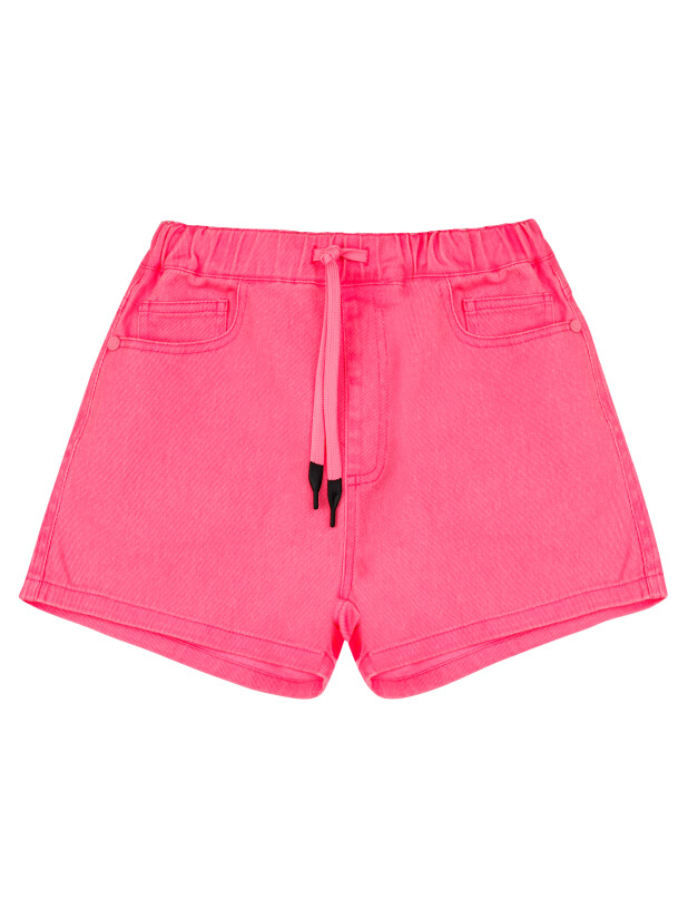 Шорты из твила для девочки. Эластичный пояс со шнурком. Функциональные карманы.