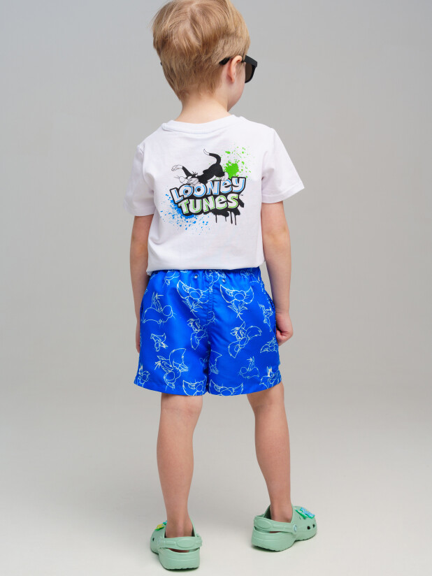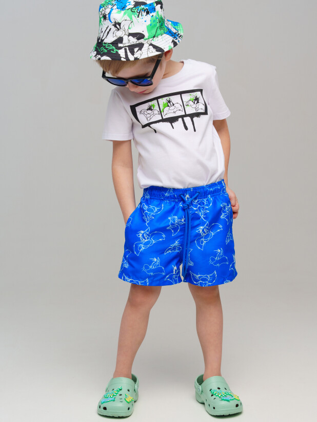Плавательные шорты из быстросохнущего материала с водоотталкивающей пропиткой для мальчика. Бордшорты детские (swimshort) длинные. Модель с подкладкой из мягкой сетки в виде трусов, карманы из сетки. Пояс на резинке с дополнительной регулировкой по талии шнурком. Благодаря UF-защите, ткань сохраняет первоначальный вид даже при длительном пребывании на солнце.