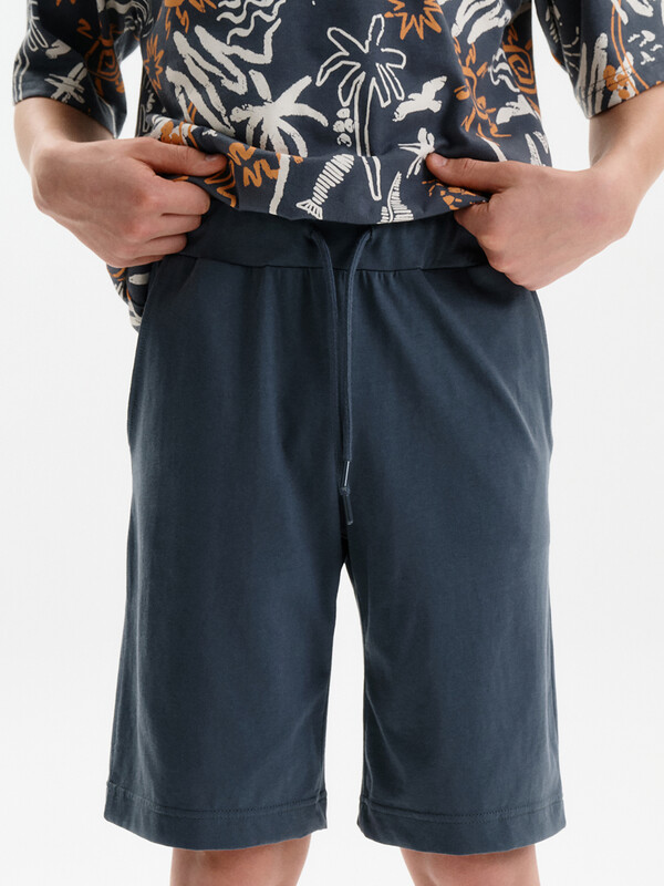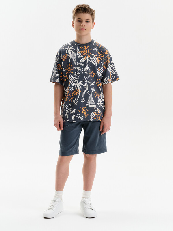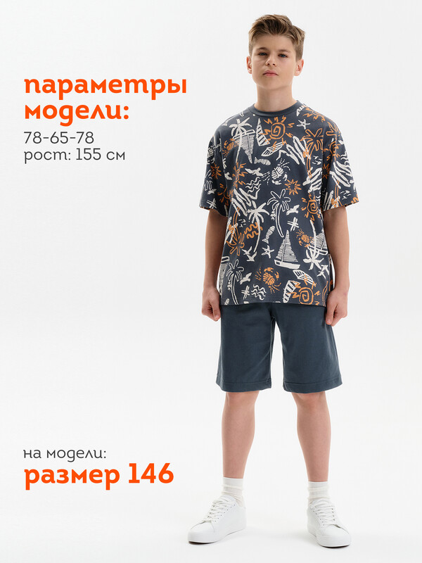 Шорты-бермуды для мальчика. Модель объемного силуэта, свободная (оверсайз), удлиненная. Широкий эластичный пояс без давления, не впивается. Внутренний шнур позволяет регулировать объём по талии. Спереди два больших кармана. Лаконичный дизайн.