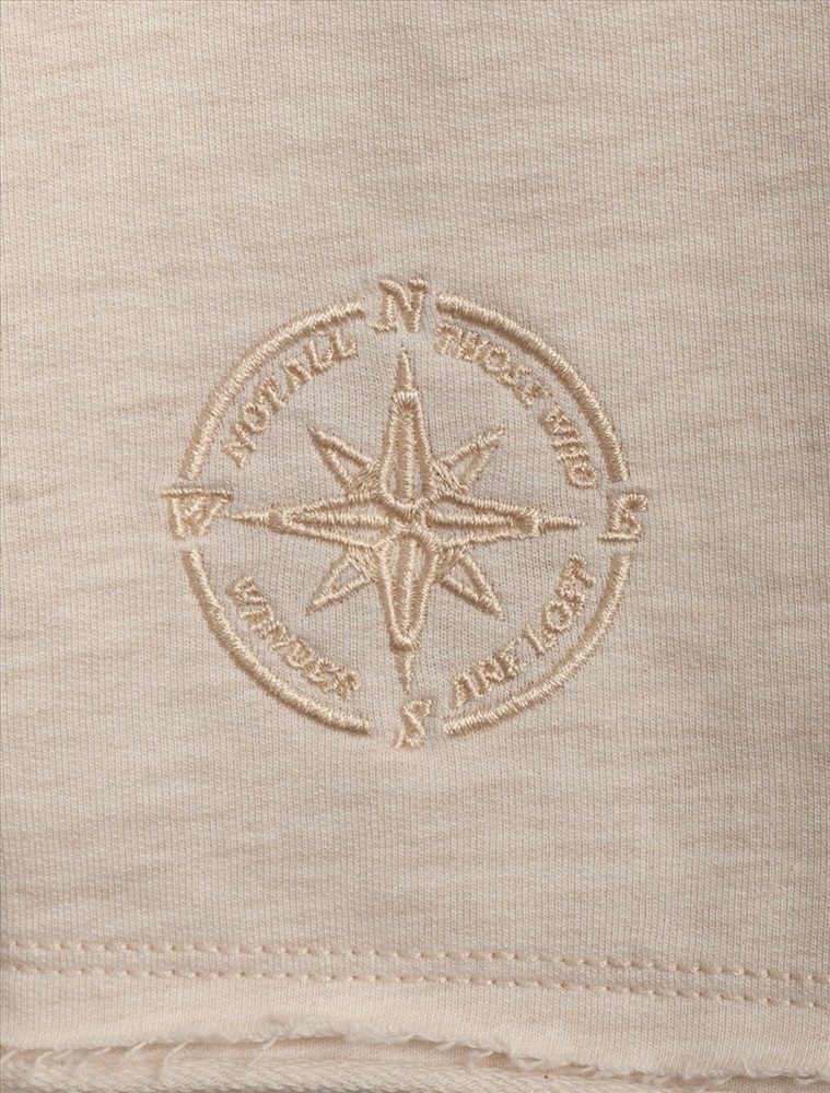Перевод принта: not all those who wander are lost - не все, кто бродят по миру, потеряли свой путь. Шорты в оттенке серый меланж выполнены из тонкого футера. Модель прямого кроя дополнена трендовыми открытыми срезами и лаконичной вышивкой роза ветров. Эластичный пояс на резинке с внутренним шнуром комфортно фиксирует изделие не сковывая движений. По бокам удобные карманы. Наличие ПЭ в составе изделия способствует формоустойчивости. Фирменный металлический логотип бренда и нашивка из эко-кожи.