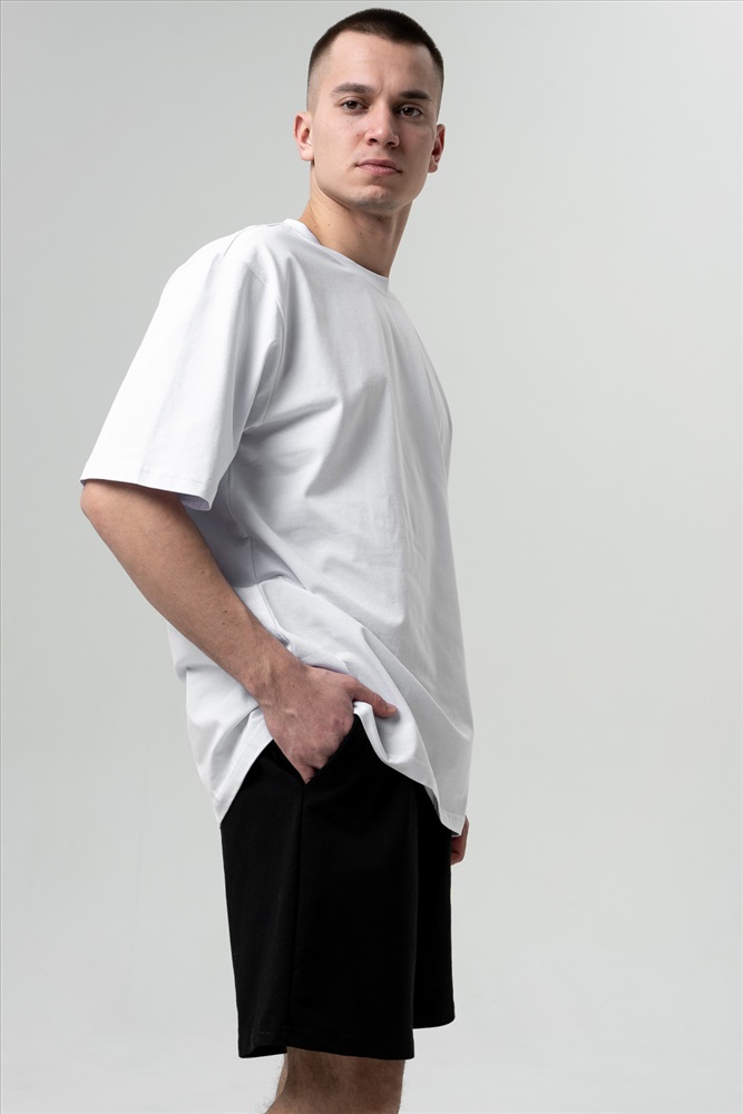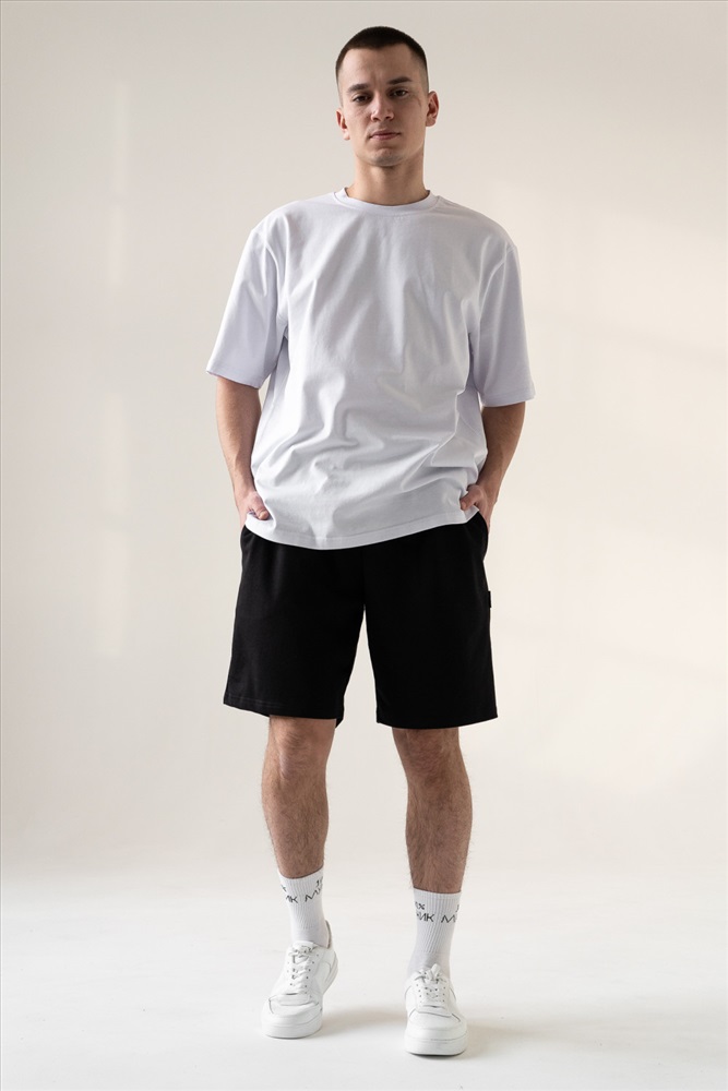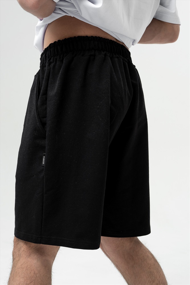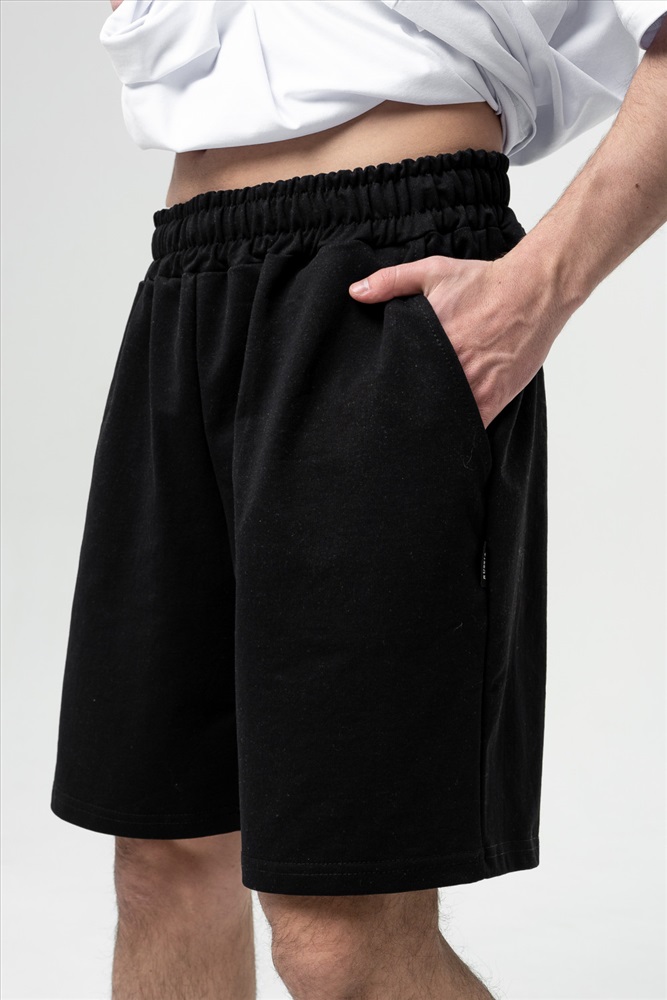 Шорты мужские чуть выше колен объемные с карманами в боковых швах, с мягкой резинкой на талии и высокой комфортной посадкой и с регулируемым шнурком. Их универсальность позволяет прекрасно сочетаться с любым верхом.