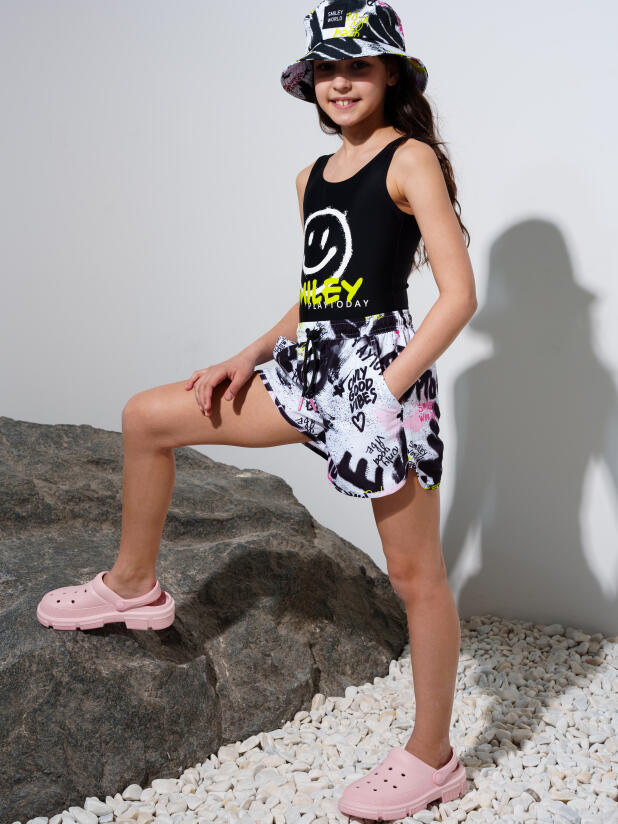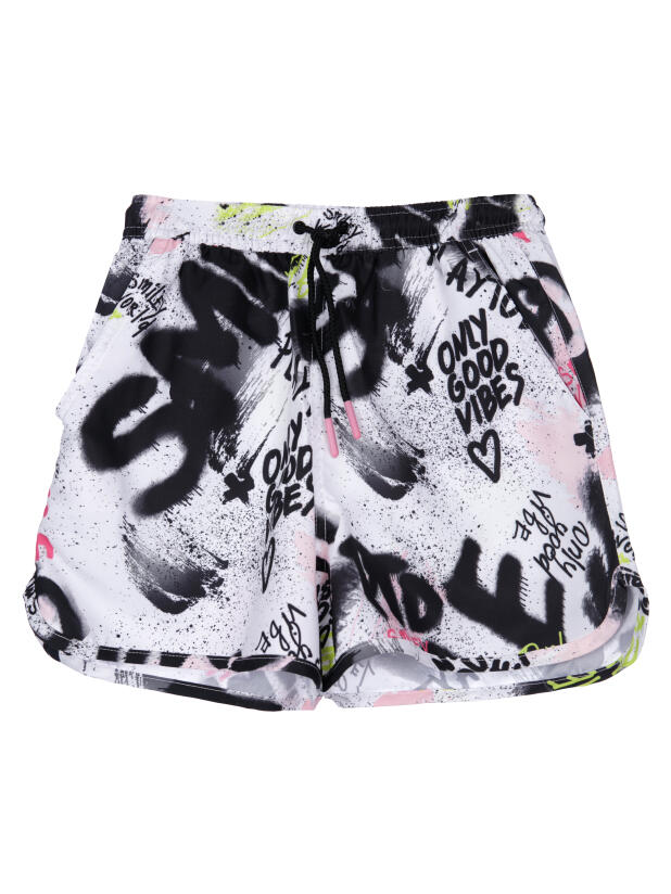 Пляжные шорты из быстросохнущего материала. Пояс на резинке с дополнительной регулировкой по талии шнурком. Карманы по бокам. Благодаря UF-защите ткань сохраняет первоначальный вид даже при длительном пребывании на солнце.