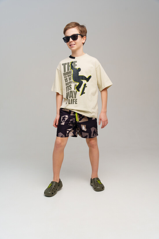 Плавательные шорты из быстросохнущего материала с водоотталкивающей пропиткой для мальчика подростка. Бордшорты для мальчика подростка (swimshort) длинные. Модель с подкладкой из мягкой сетки в виде трусов, карманы из сетки. Пояс на резинке с дополнительной регулировкой по талии шнурком. Благодаря UF-защите, ткань сохраняет первоначальный вид даже при длительном пребывании на солнце.