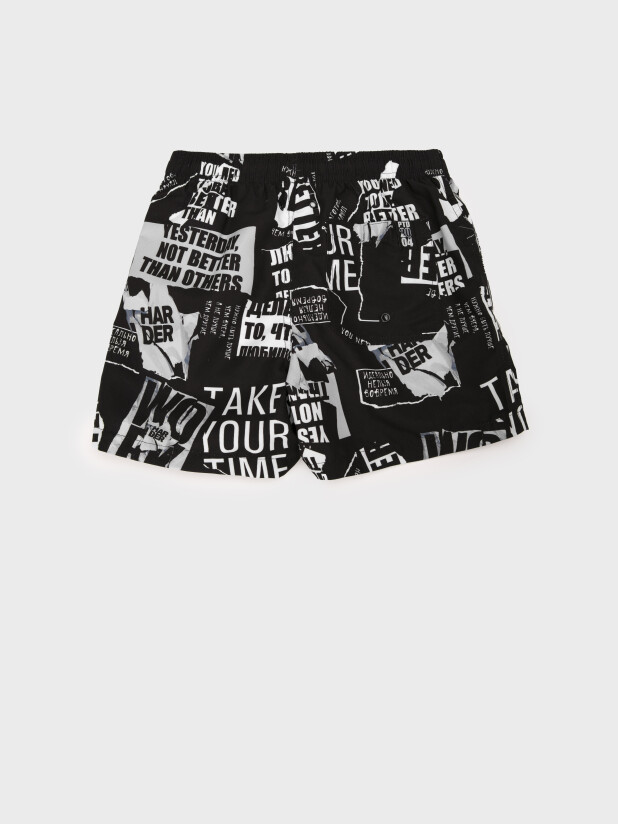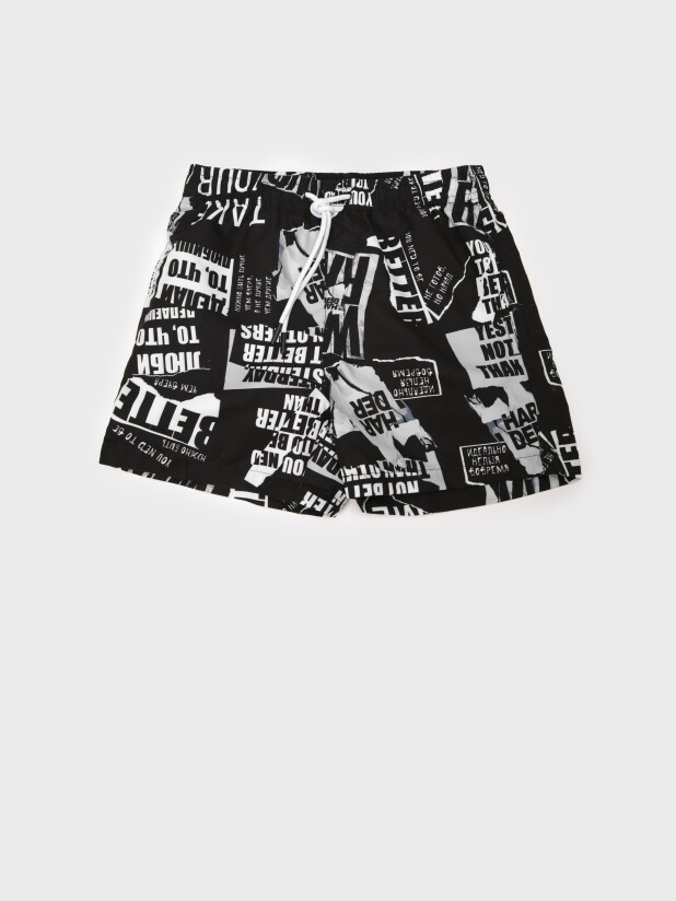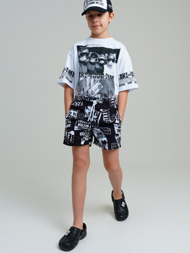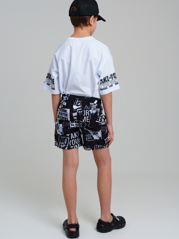 Плавательные шорты из быстросохнущего материала с водоотталкивающей пропиткой для мальчика подростка. Бордшорты для мальчика подростка (swimshort) средней длины. Модель с подкладкой из мягкой сетки в виде трусов, карманы из сетки. Пояс на резинке с дополнительной регулировкой по талии шнурком. Благодаря UF-защите, ткань сохраняет первоначальный вид даже при длительном пребывании на солнце.
