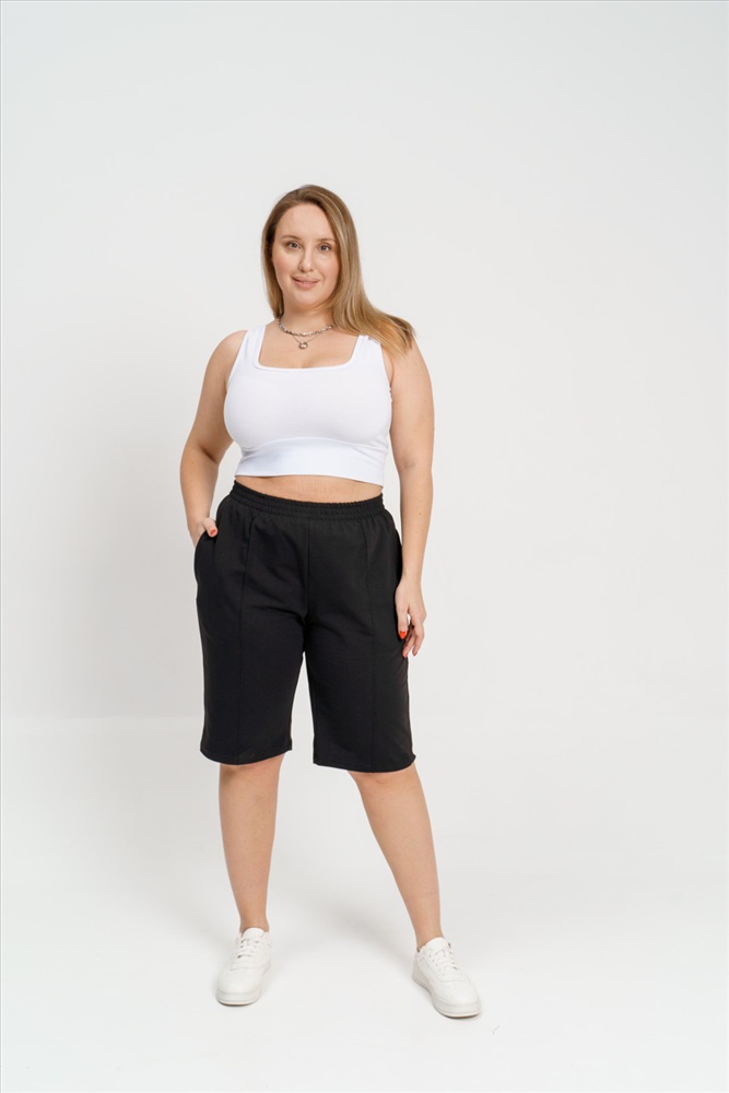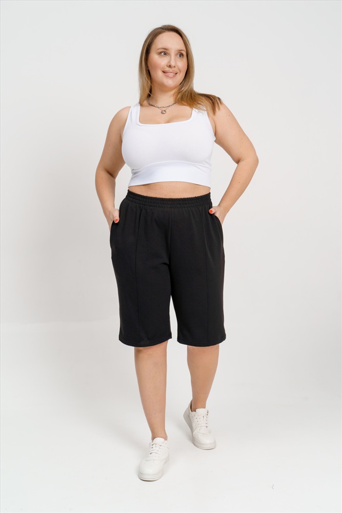 Производитель: POL`MOTIVE Код товара: 23-373L3 Состав: х/б - 65 %; л. - 10 %; ПА - 25 % Вид полотна: Футер 2-х нитка цвет: черный Коллекция: BASE Шорты длиной чуть выше колена выполнены из хлопкового футера с высокой посадкой и карманами в боковых швах. Отстрочка по центру на передней половинке шорт придают особый шик. Выглядит это очень эффектно и стильно. Модель универсальна и сочетается, как с толстовками, свитшотами, так и с футболками. Рост модели на фотографии 176 см. размер одежды 44 Длина шорт по боковому шву 42 размер 54,5см. 44 размер 55,5м. 46 размер 56,5см. 48 размер 57,5см. 50 размер 58,5см. 52 размер 59,5м. 54 размер 60,7см.