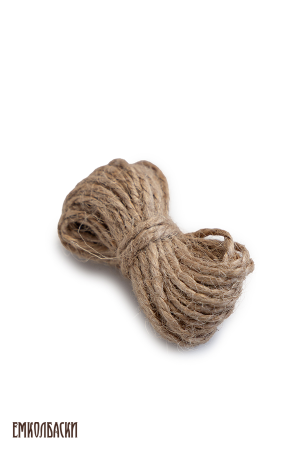 Джутовый шпагат по праву считается одним из самых "правильных" колбасных шпагатов. Колбасный шпагат люди используют сотни лет из-за его прочности и удобства в работе, ведь толстый шпагат не режет оболочку при ручной вязке домашних колбас. Из колбасного шпагата удобно делать обвязку мясных деликатесов, создавая прочную сетку для прочного утягивания и сохранения формы. Джутовый колбасный шпагат не гниет и не портится при хранении. Внимание, джутовый шпагат часто имеет запах машинного масла, это связано с особенностями технологии производства. Этот запах исчезает при термической обработке домашних колбас.
