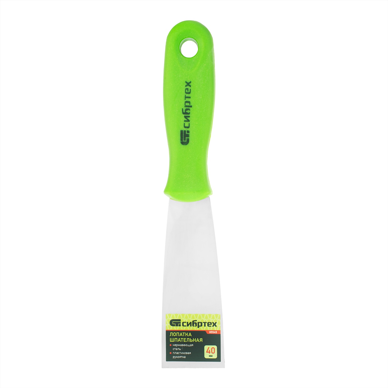 Шпательная лопатка Сибртех 85545 с полотном шириной 40 мм из нержавеющей стали, с пластмассовой ручкой, используется для нанесения, выравнивания и разглаживания строительных растворов и смесей. Пригодится для проведения ремонтно-отделочных работ, подходит для начинающих и профессиональных мастеров. Преимущества