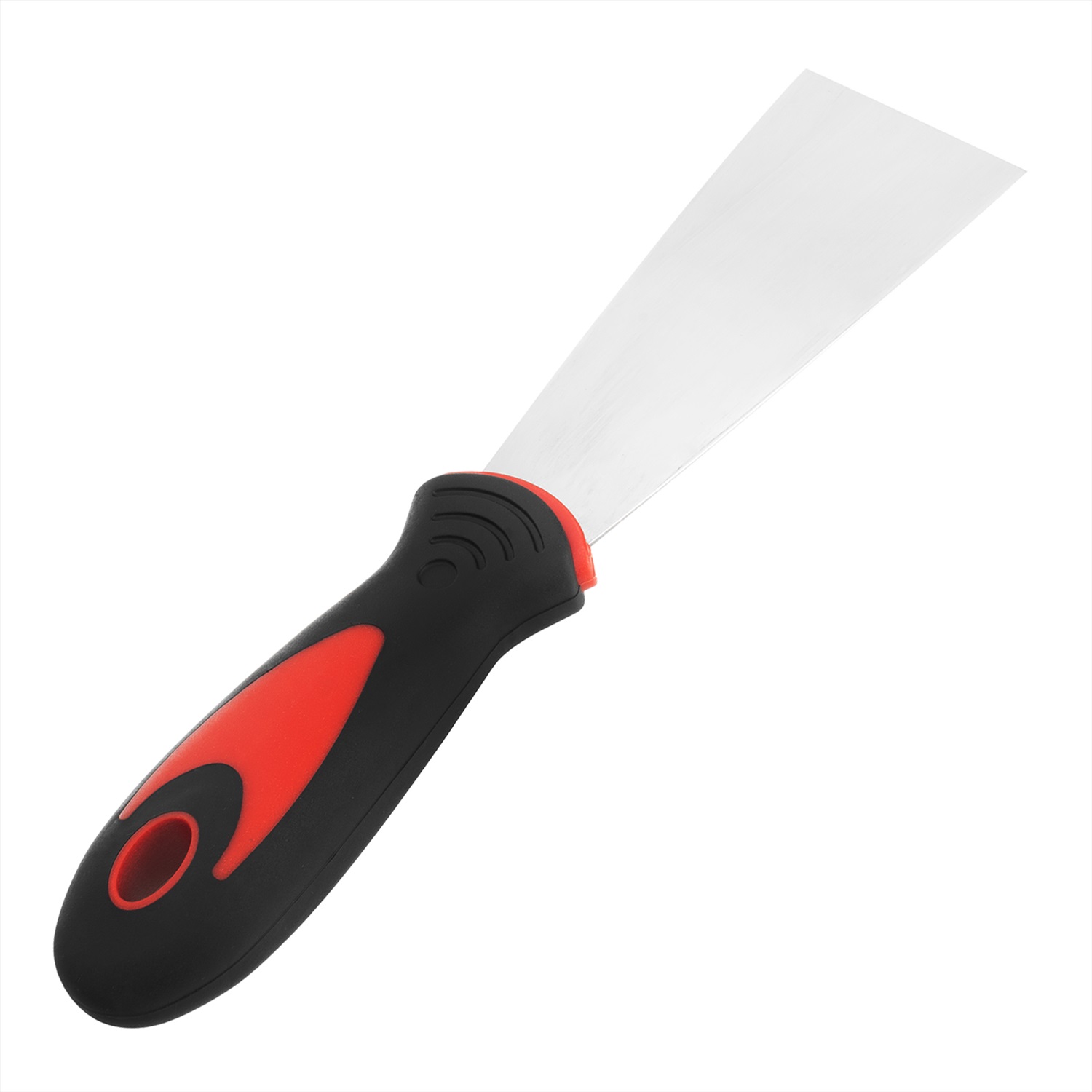 Шпательная лопатка из нержавеющей стали Matrix 85505 шириной 50 мм, с двухкомпонентной рукояткой, предназначена для нанесения и выравнивания строительных смесей, шпаклевания швов, заполнения трещин, удаления старых обоев. За счет компактных размеров инструмент подходит для корректировки мелких трещин и неровностей.