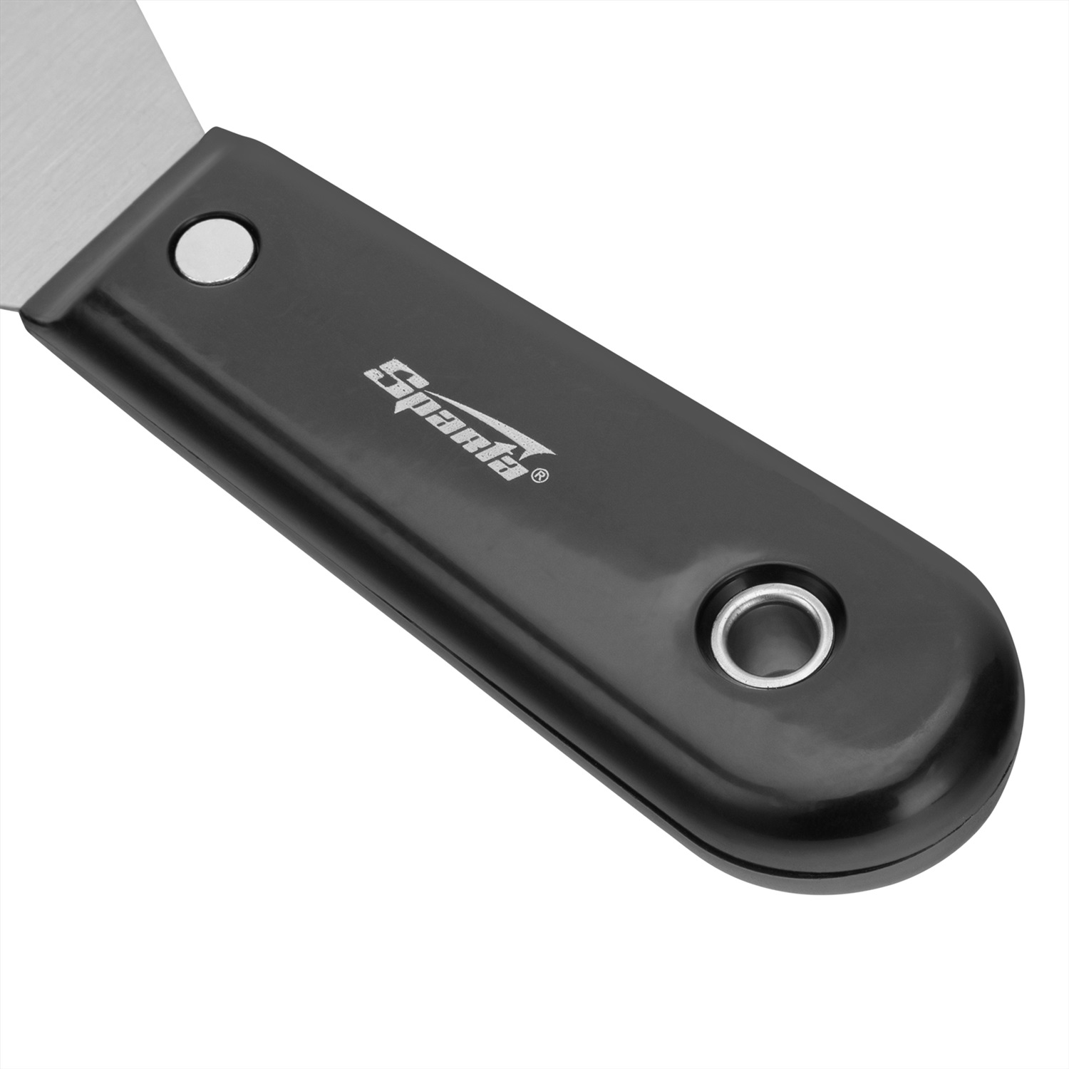 Стальная шпательная лопатка Sparta 852395 шириной 75 мм, полированная, с пластмассовой ручкой, станет незаменимым помощником при проведении строительных и ремонтных работ. Пригодится мастерам для нанесения, выравнивания и сглаживания различных клеевых и строительных растворов. Преимущества