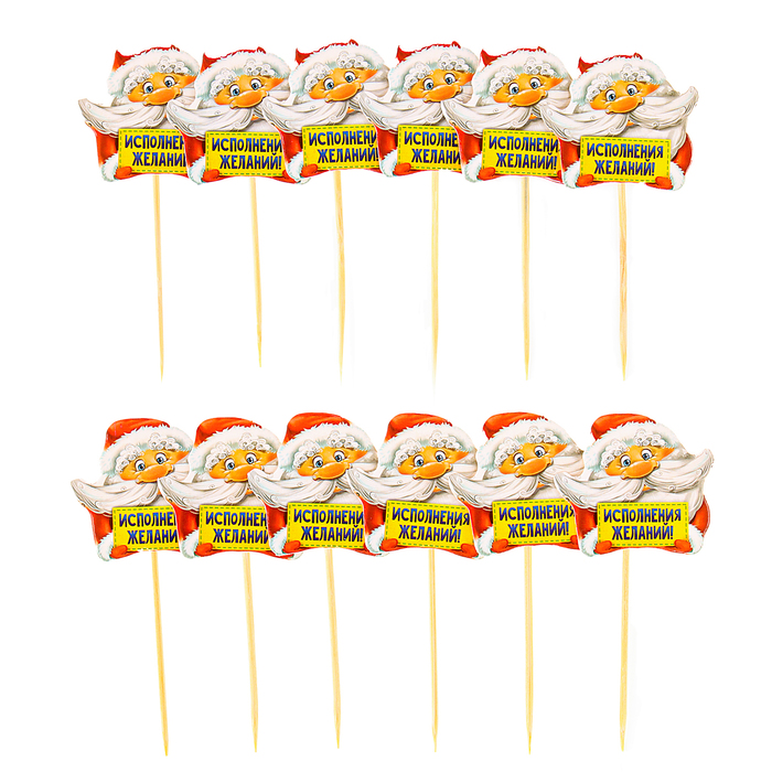 Шпажки для канапе новогодние «Исполнения желаний», Дедушка Мороз, набор 12 шт. создадут новогоднюю атмосферу за вашим столом. Эти чудесные декорации преобразят блюда и станут прекрасным дополнением не только к классическим канапе, но и к салатам, десертам, фруктам и даже напиткам. С такими аксессуарами еда будет выглядеть ещё аппетитнее и наряднее, а ваши гости непременно почувствуют эффект правильно организованного праздника!