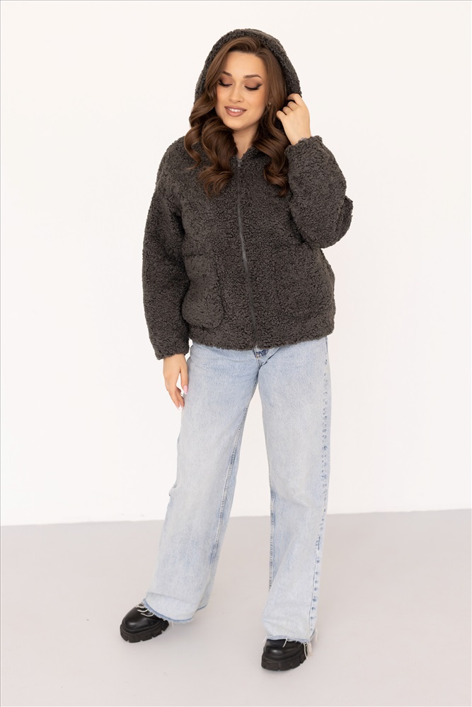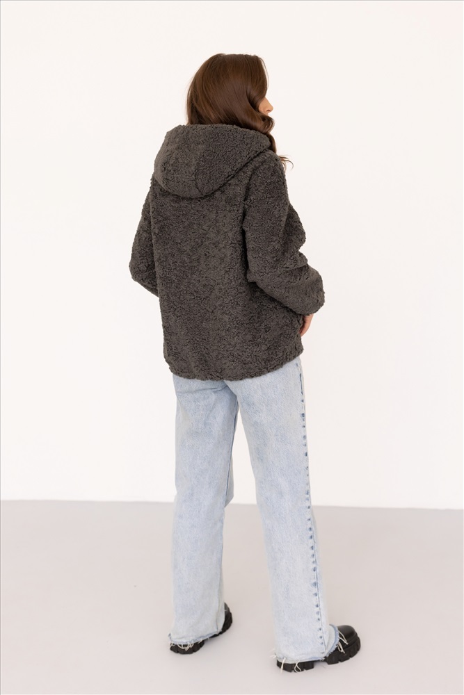 Модель: 24765; Материал: эко-мех; Цвет: серо-зелёный; Состав: 30% шерсть, 70% полиэстер Описание: Шубка демисезонная Изделие на подкладке. Силует прямой, со спущенным плечом Застежка - замок-молния. Рукав со спущенным плечом, с вытачками по низу. Карманы накладные, настрочены изнутри. Спинка с вытачками по низу. Капюшон 2-шовный. Длина по спинке - 65 см Длина рукава с плечом - 72 см