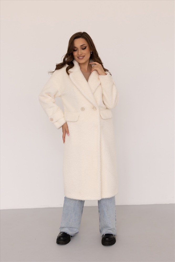Модель: 24777; Материал: эко-мех; Цвет: белый/щипаная норка; Состав: 30% шерсть, 70% полиэстер Описание: Шубка демисезонная Силует прямой, со спущенным плечом. Воротник отложной с лацканами. Застежка на 2 пуговицы (два ряда) и 1 кнопку. Рукав 1-шовный, со спущенным плечом.Подгиб низа рукава 10 см. Карман - "щель" , сверху клапан. Спинка со средним швом. Длина по спинке - 115 см Длина рукава - 72 см от шва втачивания воротника.