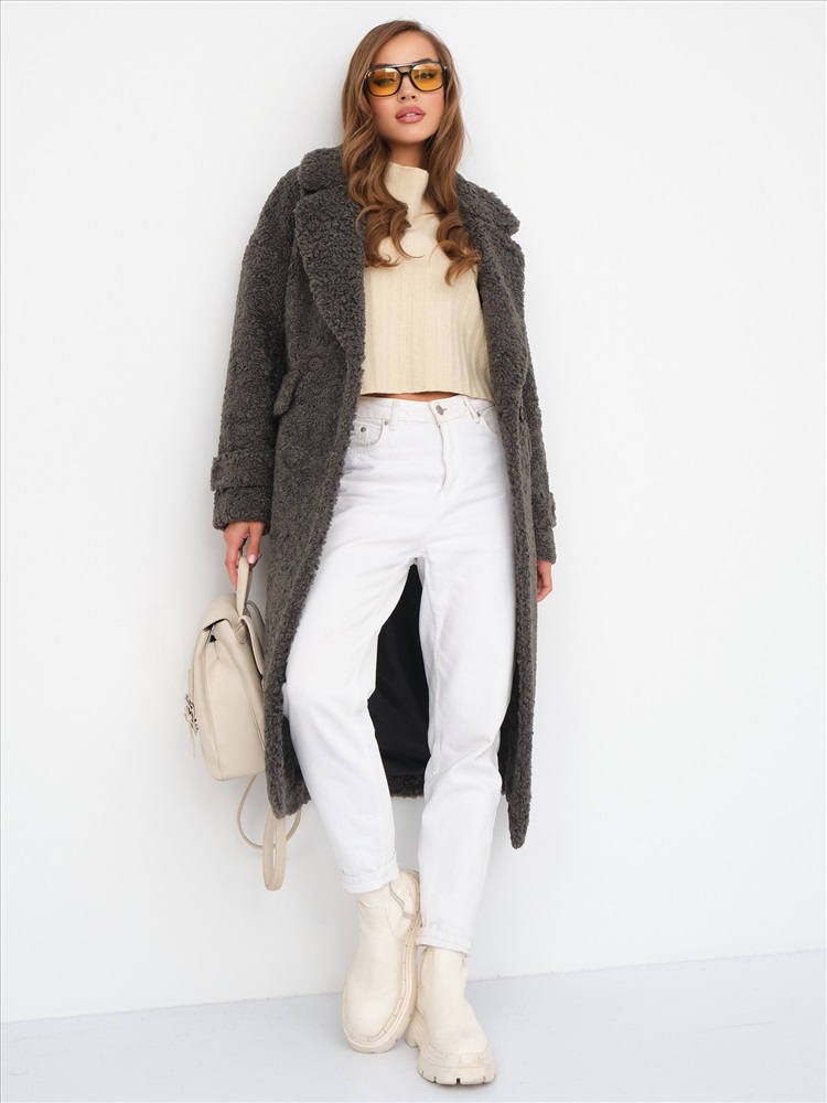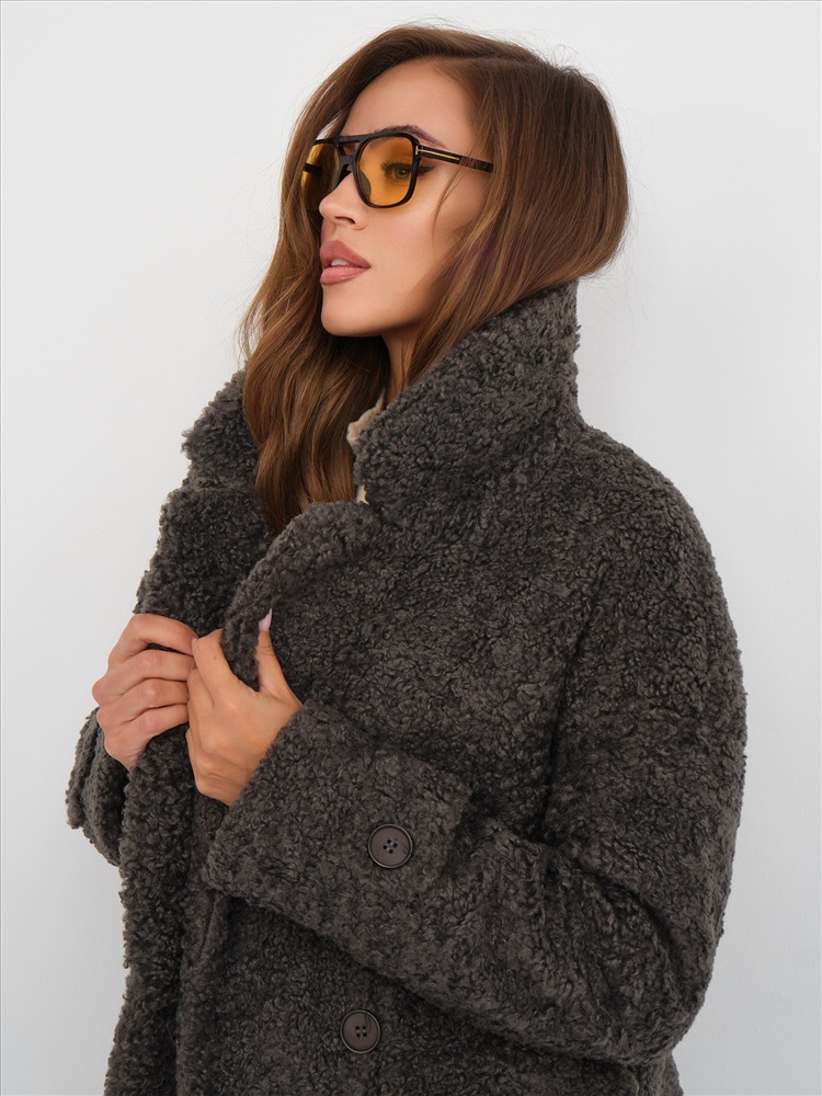 Модель: 24777; Материал: эко-мех; Цвет: серо-зелёный; Состав: 30% шерсть, 70% полиэстер