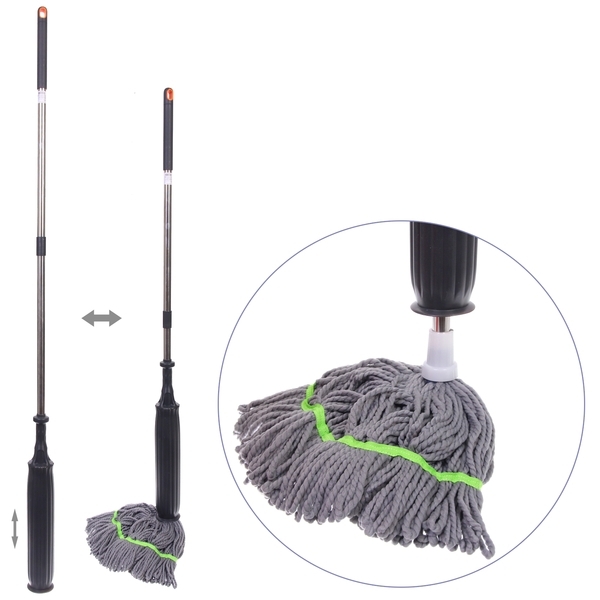 Бренд: -; Индивидуальная упаковка: Без индивидуальной упаковки; Серия: -; Материал: Металл, пластик, полиэстер; ШтрихКод: 6931994550209; Страна происхождения: Китай; Количество в коробке: 40; Длина ручки (см): 150; Телескопическая ручка: Да; Отжим: Да