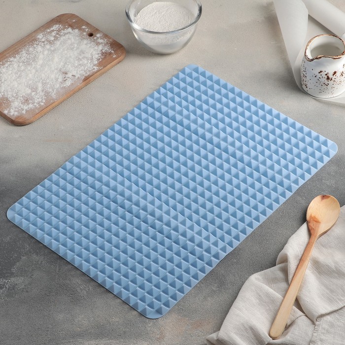 Коврик выполнен из прочного и безопасного пищевого силикона. Его легко хранить в свёрнутом виде, поэтому изделие не будет занимать много места на кухне. Изделие можно мыть в посудомоечной машине. ДополнительноСиликон выдерживает температуру до +240 градусов. Комментарии к товару