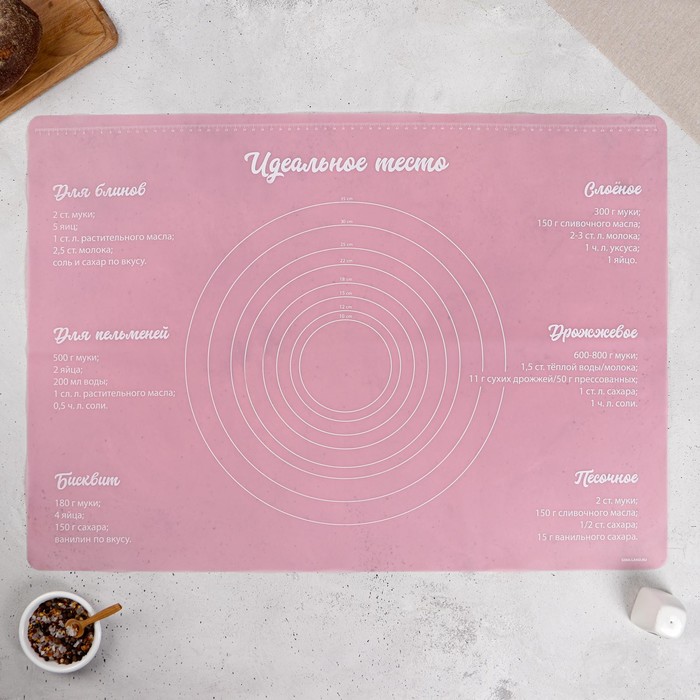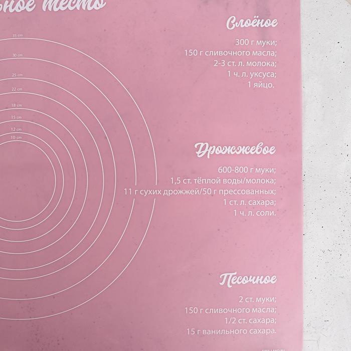 Производитель: KONFINETTA; Габариты: 0,5 x 25 x 50; Страна: Китай; В боксе: 60 шт; Состав: Силикон; Материалы: силикон; Фасовка: по 1 шт; Индивидуальная упаковка: Пакет; Габариты товара: 70 см × 50 см × 0,2 см; Сертификат: СТР; Набор: Нет; Цвет: Розовый; Длина, см: 70; Ширина, см: 50; Рисунок: Да; Материал: Силикон; Текстура: Гладкая; Особенности: С разметкой