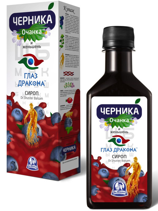 Сироп Черника ГЛАЗ ДРАКОНА DRAGON EYE Очанка и женьшень торговой марки Dr.Shuster Balsam 250 мл/300 г, Хиты продаж