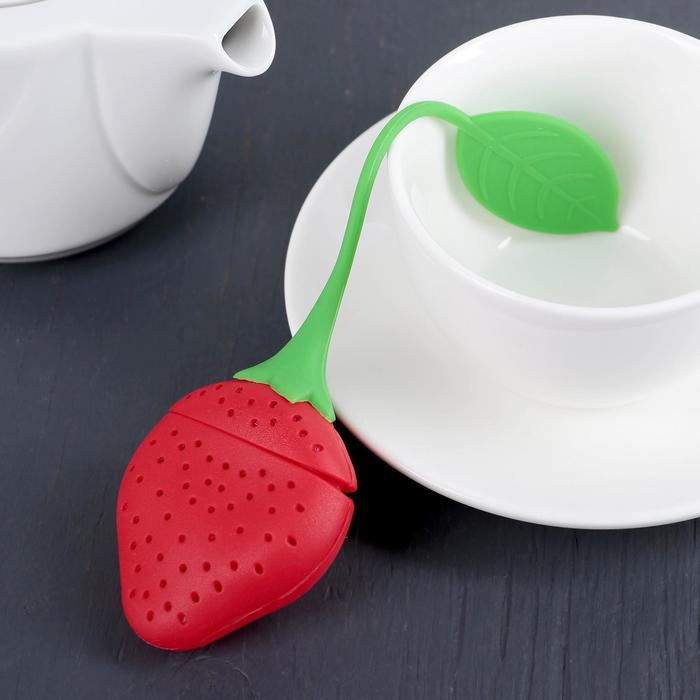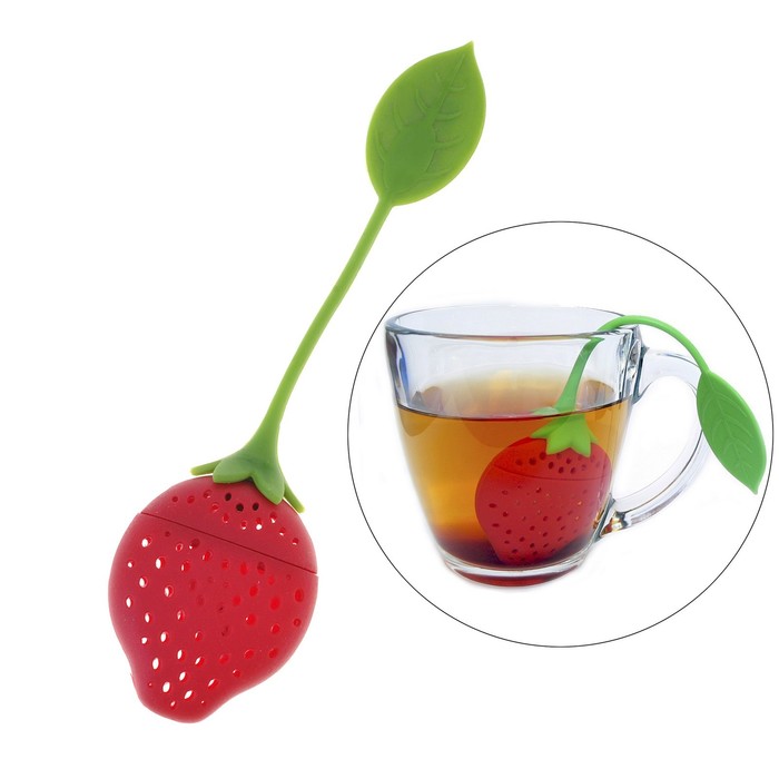 Стильный контейнер для заварки в виде клубнички - великолепный подарок всем любителям чая! Гибкий зеленый хвостик в виде листика не даст клубничке ускользнуть. Заварник выдерживает температуру от -40 до +250 градусов. Легко моется, в том числе в посудомоечной машине.