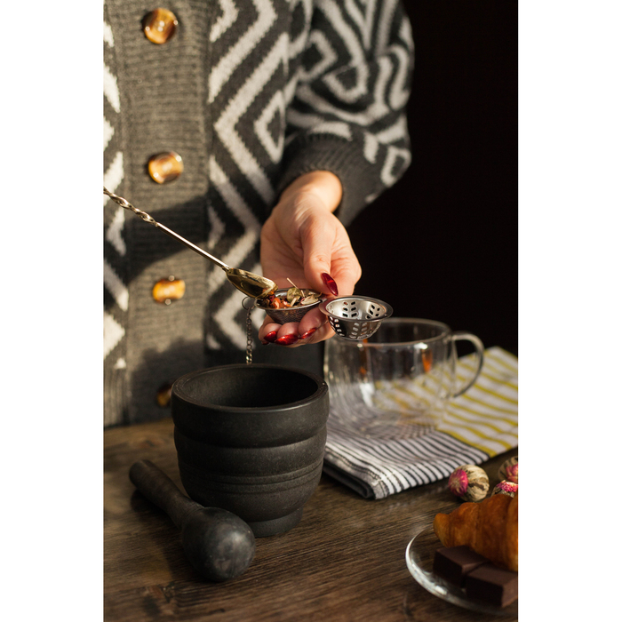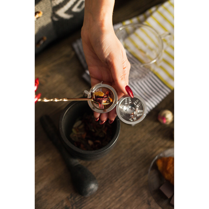 Ситечко выполнено из экологичного материала, оно не вступает в реакцию с жидкостями и не окисляется. Изделие станет отличным аксессуаром на домашнем чаепитии.