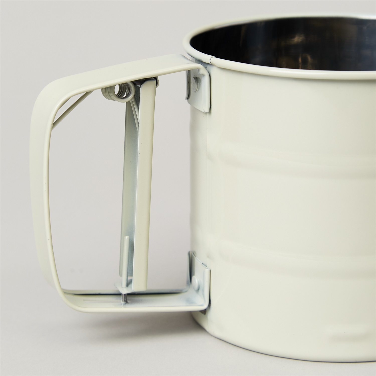 Мука - главный компонент вкусной и воздушной выпечки, поэтому прежде чем, приступить к работе, ее нужно просеять. С этой задачей прекрасно справится сито для муки. Сито выполнено в виде кружки с двойным дном и удобной ручкой, в которую встроен пружинный механизм. При нажатии на него лопасти на дне кружки вращаются и разбивают образовавшиеся комочки. Это делает процесс просеивания быстрым и удобным.Сито для муки имеет эргономичный дизайн. Небольшие размеры 10х9 см обеспечивают компактность и удобство в хранении. Кружка - сито для муки станет прекрасным решением для любой хозяйки!