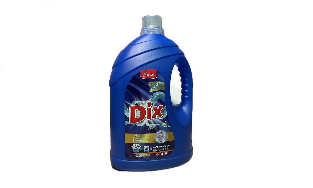 Универсальный гель для стирки белья, одежды, вещей DIX(ДИКС) 4,55 л подходит для цветных и белых вещей. Жидкий стиральный порошок удаляет загрязнения, придает вещам белизну и яркость цвета, как у нового белья. Стиральный гель автомат подходит для автоматической и ручной стирки. В состав геля для стирки в стиральной машине входят вещества, защищающие от появления накипи в стирально машине. Средство для стирки белья и одежды хорошо растворяется в воде и не оставляет следов на одежде. Отдушки у гель порошка не оставляют неприятного запаха, что дает вещам запах свежести. Жидкий гель порошок DIX подходит для стирки детских вещей. В состав входят гипоаллергенные европейские компаненты. Для доп эффекта свежести и мягкости можно использовать вместе с кондиционером - ополаскивателем для белья.