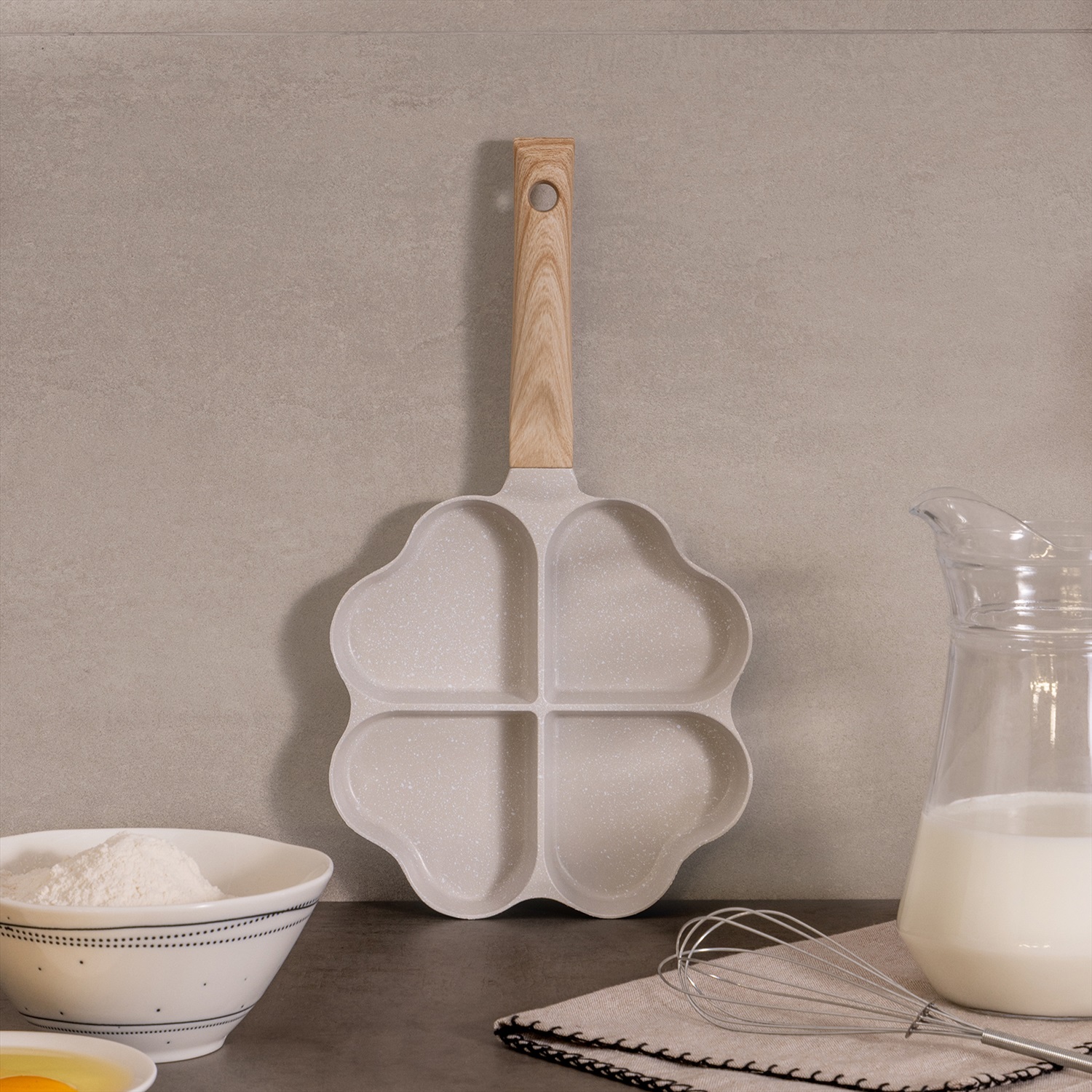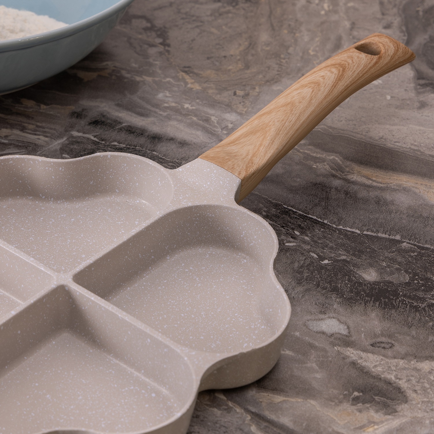 Сковороды AGNESS выполнены из литого алюминия. Такая посуда отличается высокой теплопроводностью и устойчивостью к деформациям. Необычный дизайн сковороды позволит приготовить интересные и веселые оладушки и омлеты.