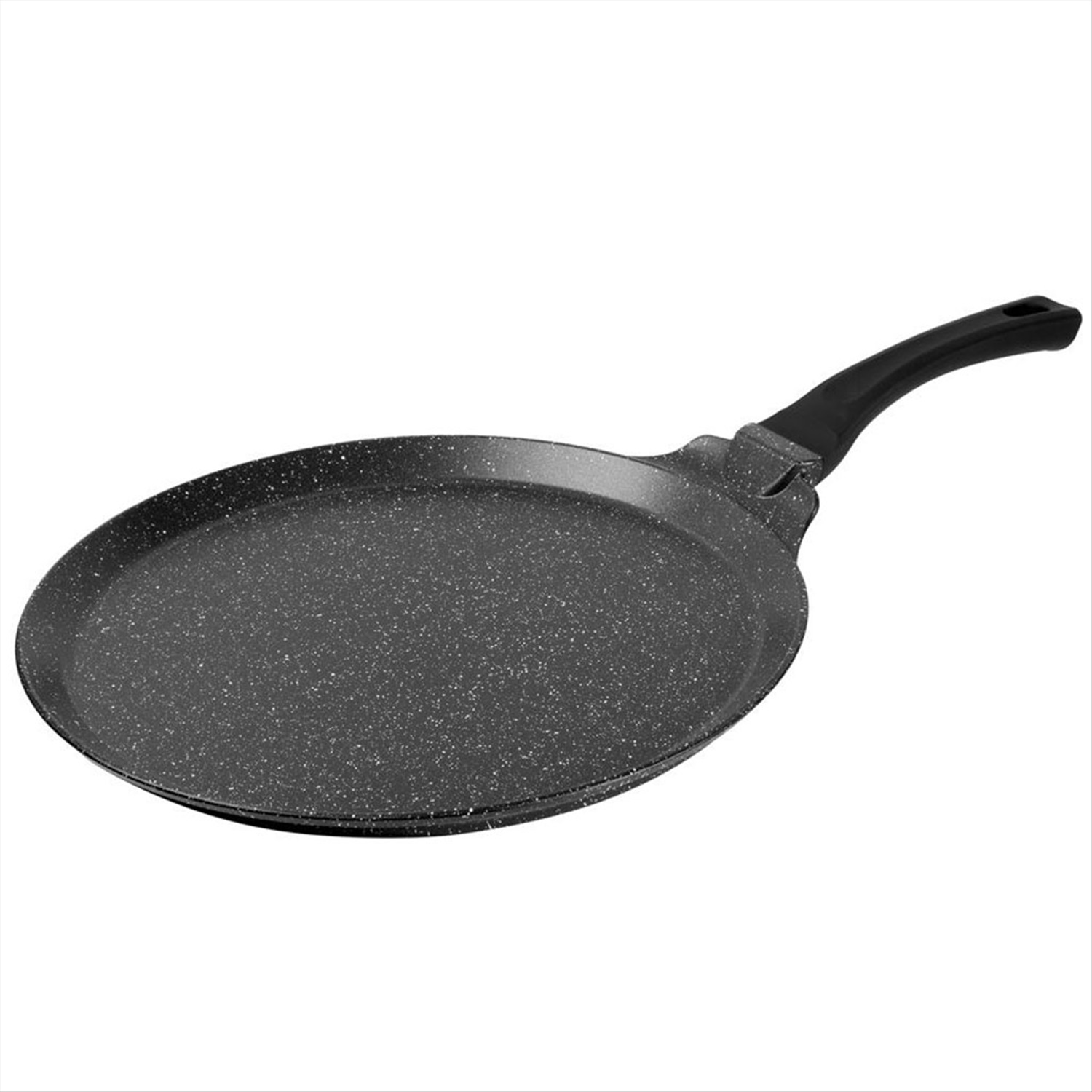 * Ее низкие, слегка закругленные борта, утолщенное дно, а также покрытие с безупречными антипригарными качествами обеспечивают легкое и быстрое соскальзывание готового блюда со сковороды