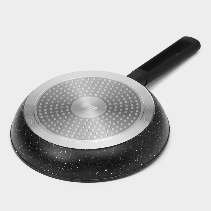 Габариты: 39,5 x 22,5 x 4,5 Страна: Китай В боксе: 24 шт Состав: Алюминий, пластик, антипригарное покрытие Материалы: алюминий, пластик, антипригарное покрытие Фасовка: по 1 шт Индивидуальная упаковка: Цветная картонная обёртка Габариты товара: 39,5 см × 22 см × 4,5 см Сертификат: СТР Набор: Нет Цвет: Чёрный Диаметр, см: 22 Высота стенки, см: 4,5 Диаметр дна, см: 18,5 Рисунок: Нет Крышка: Нет Материал: Кованый алюминий Съёмная ручка: Нет Тип покрытия: Антипригарное Тип плиты: Для галогенной плиты, Для индукционной плиты, Для электрической плиты, Для газовой плиты, Для стеклокерамической плиты Капсульное дно: Нет Вид сковороды: Стандартная Можно мыть в посудомоечной машине: Да Фиксированная цена: Да Сковорода Доляна «Первый дом» — идеальное сочетание стиля, функциональности и удобства. Её диаметр позволяет готовить разнообразные блюда для всей семьи, а чёрное глянцевое покрытие придаёт элегантный вид. Благодаря антипригарному покрытию пища не прилипает к поверхности и легко перемещается на тарелку. Индукционное дно обеспечивает быстрый и равномерный нагрев, сокращая время приготовления и экономя электроэнергию. Эргономичная ручка из бакелита не нагревается и обеспечивает удобный захват. Эта сковорода станет незаменимым помощником на вашей кухне и превратит приготовление пищи в удовольствие. Преимущества сковороды: