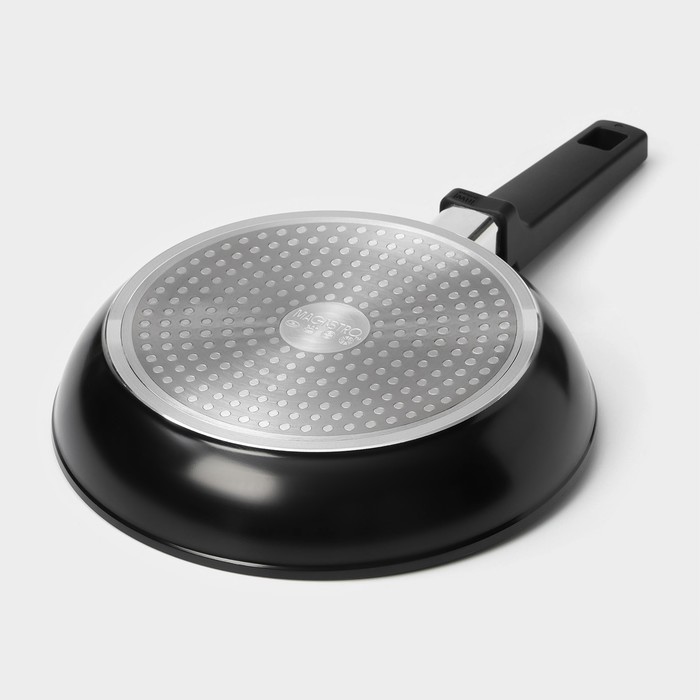 Габариты: 39 x 22,7 x 6,5 Страна: Китай В боксе: 6 шт Состав: Пластик, антипригарное покрытие, кованый алюминий Материалы: пластик, антипригарное покрытие, кованый алюминий Фасовка: по 1 шт Индивидуальная упаковка: картонная рамка Габариты товара: 39 см × 22,7 см × 4,5 см Сертификат: СТР Набор: Нет Цвет: Чёрный Диаметр, см: 22 Толщина стенки, мм: 3,5 Толщина дна, мм: 3,5 Высота стенки, см: 4,5 Диаметр дна, см: 17,7 Крышка: Нет Материал: Кованый алюминий Съёмная ручка: Нет Тип покрытия: Антипригарное Тип плиты: Для галогенной плиты, Для индукционной плиты, Для электрической плиты, Для газовой плиты, Для стеклокерамической плиты Капсульное дно: Нет Вид сковороды: Стандартная Можно мыть в посудомоечной машине: Да Фиксированная цена: Да Сковорода Magistro серии Flame изготовлена из кованого алюминия и имеет сверхпрочное антипригарное покрытие. Покрытие полностью безопасно для здоровья, не содержит PFOA и других вредных веществ. В такой сковороде удобно жарить, тушить, она прекрасно сохраняет сочность мяса, рыбы и овощей. Благодаря надежному антипригарному покрытию на сковороде можно готовить с минимальным количеством масла: продукты не прилипнут, не подгорят. Особенности: