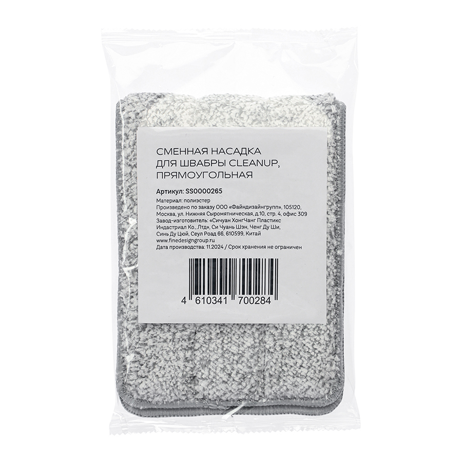 Коллекция: Cleanup Название товара: Сменная насадка для швабры с ведром Cleanup, прямоугольная Артикул: SS0000265 Материал: полиэстер Вес: 45 гр Размеры в упаковке (ШхГхВ): 20,5 х 13,5 х 1,7 см Размеры без упаковки (ШхГхВ): 34 х 12,3 х 0,6 см Сменная насадка Cleanup позволит обновить швабру для эффективной уборки в вашем доме. Она изготовлена из специального материала, который отлично захватывает грязь и пыль, обеспечивая идеальную чистоту на любых поверхностях. Особенности и преимущества: - Выполнена из прочного, износостойкого материала. - Легко снимается для тщательной очистки и сушки. Материал: полиэстер. Размеры: 34х12,3х0,6 см. Комментарии к товару