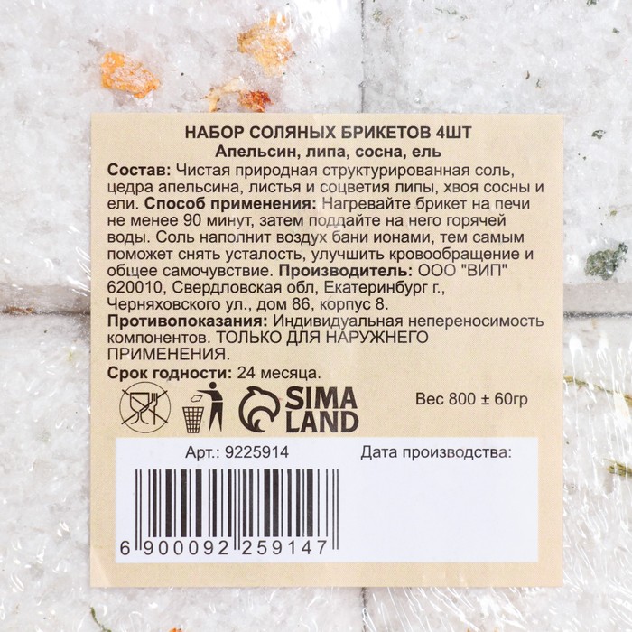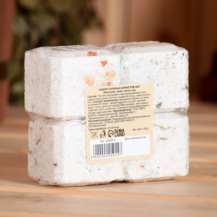 Соляной брикет набор 4 шт "Апельсин, липа, сосна, ель" по 200 гр "Добропаровъ"