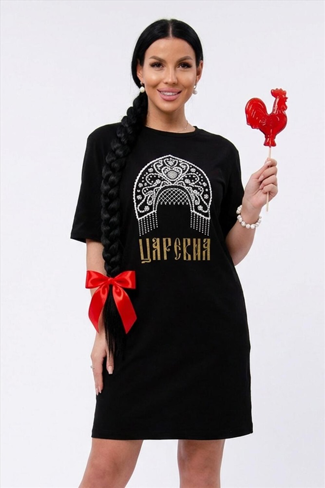 Производитель: Malina; Состав: 100% хлопок; Модель: Сорочка Царевна; Тип товара: сорочка; Материал: кулирка | кулирка; Бренд: Malina; Длина: средняя длина; Карман: без карманов; Назначение: для дома; НДС: 5%; Рисунок: надпись | разное; Рукав: короткий рукав; Сезонность: лето | осень | весна | зима; Силуэт: свободный; Стиль: домашний; Воротник: без воротника; Застежка: без застежки
