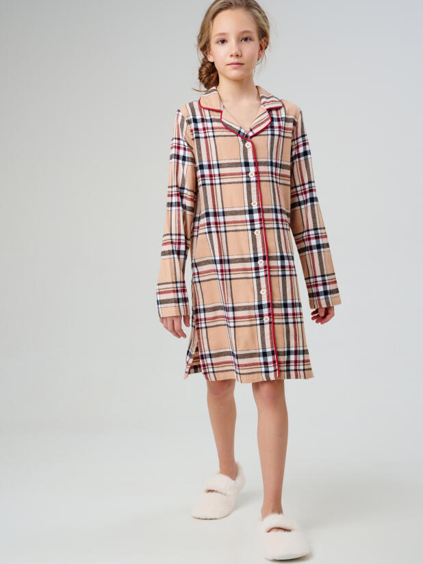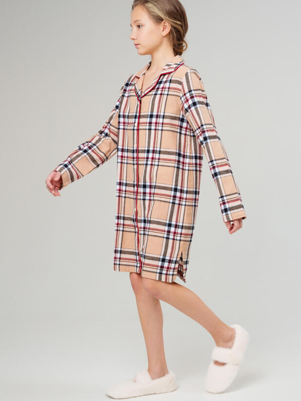 Классическая фланелевая ночная сорочка в клетку для девочки подростка от PlayToday — тепло, комфорт и нежный уход за кожей ребёнка каждую ночь.