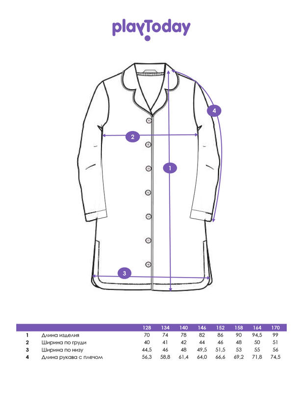 Сочетайте сорочку с тёплым халатом и мягкими тапочками PlayToday, чтобы создать полный комплект для домашнего уюта.