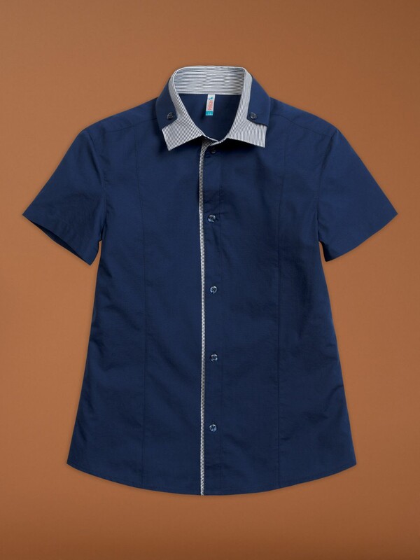 Ткань хорошо держит форму, пропускает воздух и легко разглаживается. А внутренняя контрастная отделка воротника избавит вас от частых стирок.