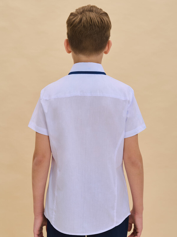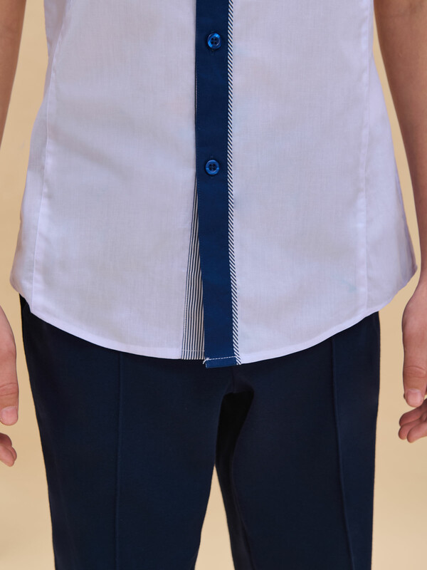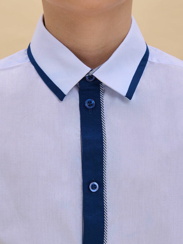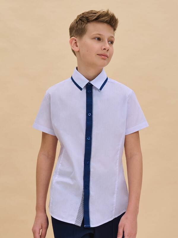 Рубашка для мальчика школьная - остается незаменимой частью гардероба. Детская рубашка представляет собой полуприлегающий силуэт с рельефами от проймы по переду и спинке. Сорочка для мальчика дополнена воротником типа «Виндзор», который позволяет носить её как с классическим галстуком или галстуком-бабочкой, так и без них. Декорирована контрастной отделкой по стойке и внешнему краю воротника, внешней планке. Нижняя планка и декоративный кант вдоль планки выполнены из ткани в полоску, что придает рубашке стильный вид и выгодно отличает её от банальных однотонных моделей. Рубашка для мальчика имеет темный цвет отделки, что позволяет реже стирать изделие. В составе ткани преобладает высококачественный хлопок, который отлично пропускает воздух, давая коже дышать и не перегревая ребёнка. Полиэстер же обеспечивает сохранность формы изделия. Для школьных рубашек мы используем сорочечную ткань, плотностью 100 гр/м2. В ассортименте представлена рубашка на мальчика в синем, белом и голубом цвете, которые легко сочетаются с любыми брюками, пиджаками и жилетами. Стильная рубашка школьная - прекрасный выбор для повседневной носки в школу и более торжественных случаев. Рекомендуемые инструкции по уходу: стирать при температуре не выше 30 °С, без предварительного замачивания, с изнанки, расправить перед сушкой. Это поможет сохранить качество и цвет на длительное время. Выберите нужный размер, ориентируясь на таблицу размеров на фото. Помните, что цвет товара на экране вашего устройства может отличаться от реального цвета изделия.