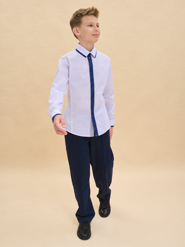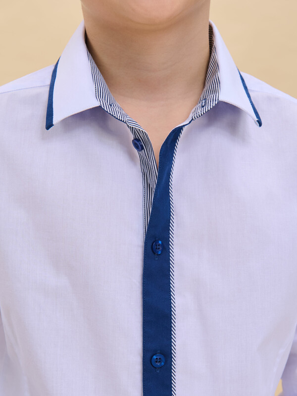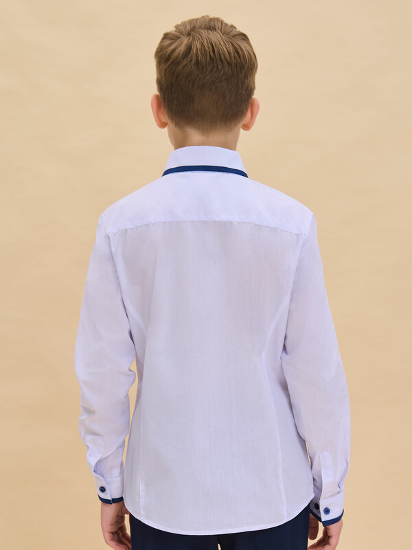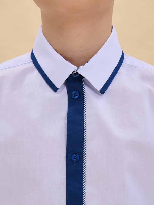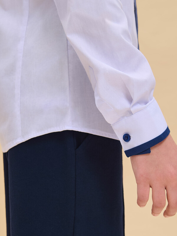 Рубашка для мальчика школьная — это не просто часть школьной формы, это элемент стиля, который придает образу элегантность и изысканность. Модель полуприлегающего силуэта с рельефами от проймы по переду и спинке. Внешний вид рубашки детской завершает воротник типа «Виндзор», который открывает возможность носить ее как с классическим галстуком, так и без него. Особенно привлекательна сорочка для мальчика контрастной отделкой по стойке, внешнему краю воротника, внешней планке и манжетам. Темные оттенки отделки делают рубашку еще более утонченной и позволяют реже стирать изделие, сохраняя его первоначальный вид на протяжении долгого времени. В составе ткани преобладает высококачественный хлопок, который обеспечивает отличную вентиляцию и позволяет коже дышать, не создавая дискомфорта даже в теплую погоду. Добавление полиэстера делает рубашку на мальчика более устойчивой к многократным стиркам и помогает сохранить ее форму на протяжении долгого времени. Для школьных рубашек мы используем сорочечную ткань, плотностью 100 гр/м2. В ассортименте представлены несколько универсальных цветов рубашки на мальчика: белый и голубой, которые легко сочетаются с различными брюками, пиджаками и жилетами. Эта стильная рубашка школьная — отличный выбор для повседневной носки или для особых торжественных случаев. Рекомендуемый уход за рубашкой: стирка при температуре не выше 30 °С, без предварительного замачивания, с изнанки, и расправить перед сушкой. При правильном уходе рубашка не потеряет внешнего вида. Пожалуйста, выбирайте нужный размер, ориентируясь на таблицу размеров на фото. Обратите внимание, что цвет товара на экране вашего устройства может немного отличаться от цвета реального изделия.