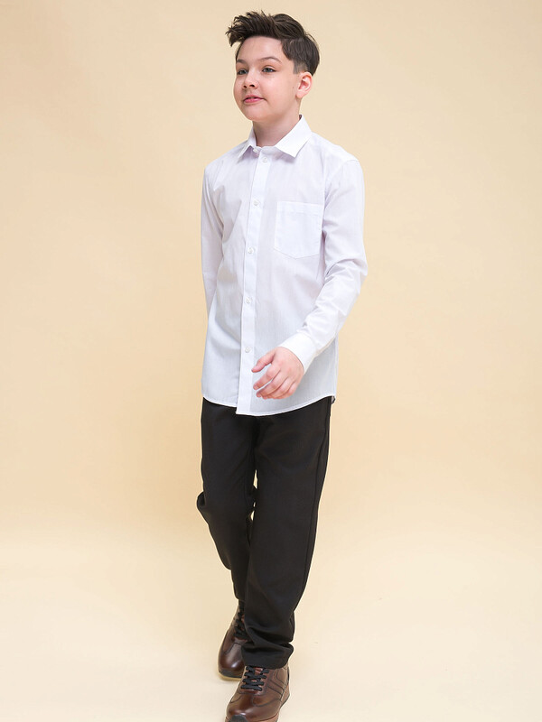 Школьная рубашка увеличенного объема для мальчиков. Преобладающий в составе ткани хлопок делает эту модель мягкой, дышащей и комфортной для ребёнка. Полиэстер помогает изделию сохранять форму и превосходный внешний вид. Рубашка с воротником типа windsor и нагрудным карманом традиционной формы — классика, не выходящая из моды. Подойдет для любого типа фигуры, не будет стеснять движения. Отличный вариант для школьной формы и любого торжественного случая.
