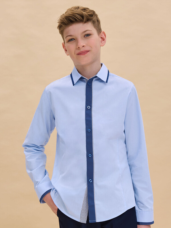 Рубашка для мальчика школьная — это не просто часть школьной формы, это элемент стиля, который придает образу элегантность и изысканность. Модель полуприлегающего силуэта с рельефами от проймы по переду и спинке. Внешний вид рубашки детской завершает воротник типа «Виндзор», который открывает возможность носить ее как с классическим галстуком, так и без него. Особенно привлекательна сорочка для мальчика контрастной отделкой по стойке, внешнему краю воротника, внешней планке и манжетам. Темные оттенки отделки делают рубашку еще более утонченной и позволяют реже стирать изделие, сохраняя его первоначальный вид на протяжении долгого времени. В составе ткани преобладает высококачественный хлопок, который обеспечивает отличную вентиляцию и позволяет коже дышать, не создавая дискомфорта даже в теплую погоду. Добавление полиэстера делает рубашку на мальчика более устойчивой к многократным стиркам и помогает сохранить ее форму на протяжении долгого времени. Для школьных рубашек мы используем сорочечную ткань, плотностью 100 гр/м2. В ассортименте представлены несколько универсальных цветов рубашки на мальчика: белый и голубой, которые легко сочетаются с различными брюками, пиджаками и жилетами. Эта стильная рубашка школьная — отличный выбор для повседневной носки или для особых торжественных случаев. Рекомендуемый уход за рубашкой: стирка при температуре не выше 30 °С, без предварительного замачивания, с изнанки, и расправить перед сушкой. При правильном уходе рубашка не потеряет внешнего вида. Пожалуйста, выбирайте нужный размер, ориентируясь на таблицу размеров на фото. Обратите внимание, что цвет товара на экране вашего устройства может немного отличаться от цвета реального изделия.