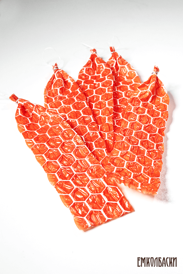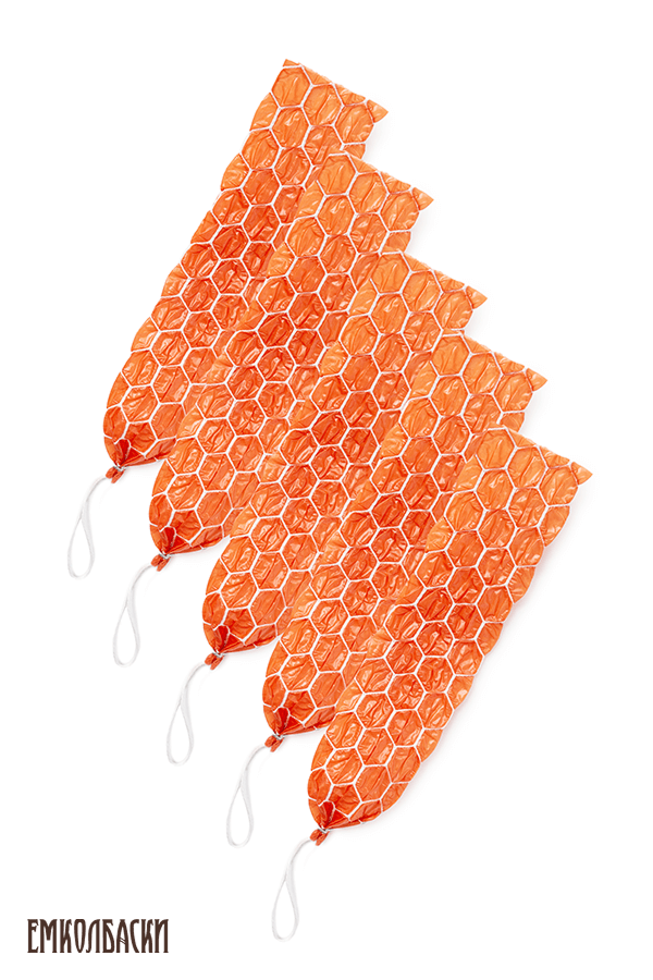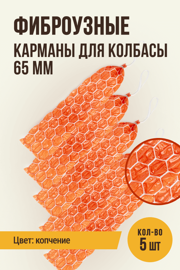 Сотовые карманы для колбасы фиброузные, сота, калибр 65 мм, длина 31 см, клипса с петлей (5 шт.), копчение